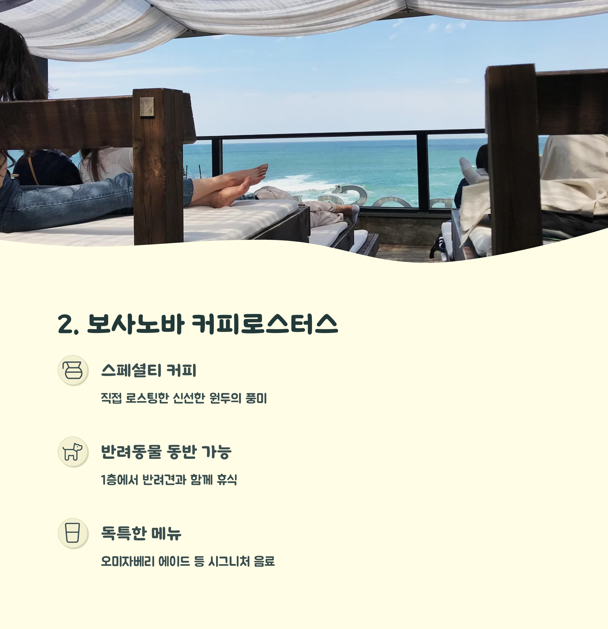 | 보사노바 커피로스터스 | 스페셜티 커피와 루프탑 오션뷰, 반려동물 동반 가능 |