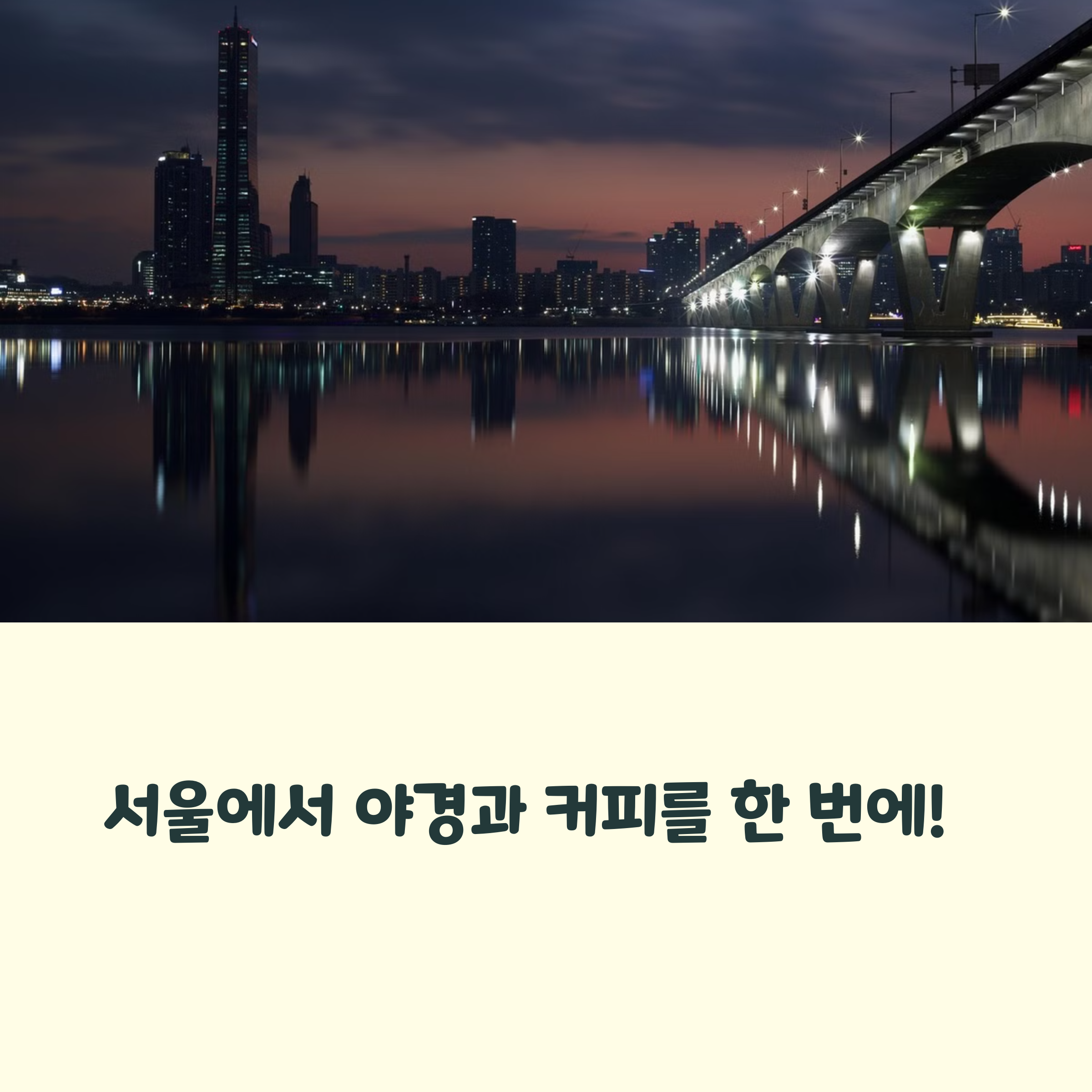 서울의 밤, 그리고 그 속에서 마시는 따뜻한 커피. 아름다운 뷰가 더해진 카페에서의 시간은 일상에 여유와 감성을 선물해줍니다. 오늘 소개한 야경 명소 카페 리스트로 평범한 하루를 특별한 밤으로 바꿔보세요. 당신의 서울 밤이 더욱 반짝이길 바랍니다 :)