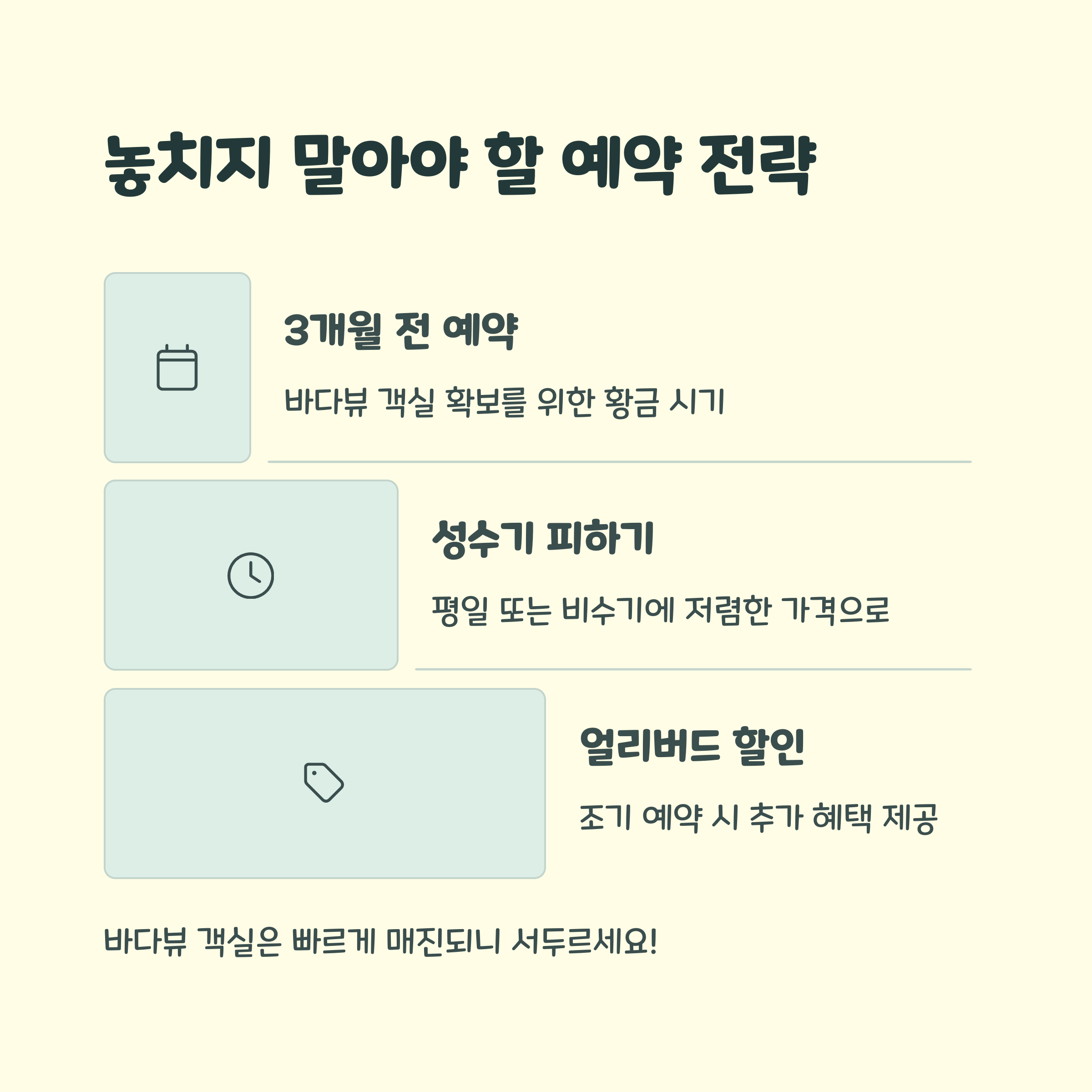 예약 팁 바다 뷰 객실은 조기 매진되므로 최소 한 달 전 예약 권장