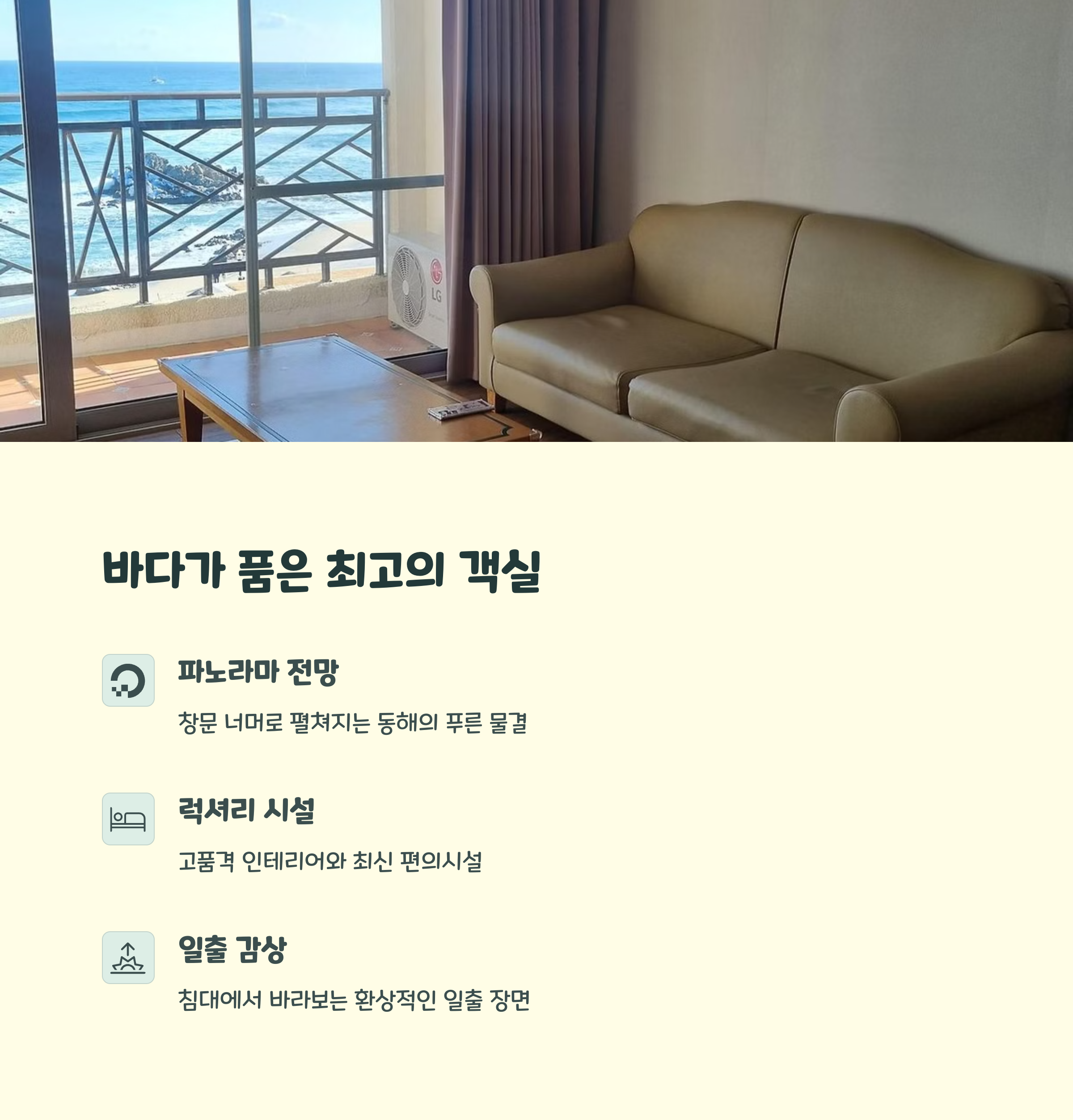 바다 뷰 객실 후기, 예약 팁, 가족과 함께한 경험 등 여러분만의 이야기를 댓글로 남겨주세요! 당신의 후기가 다른 여행자들에게 큰 도움이 됩니다.