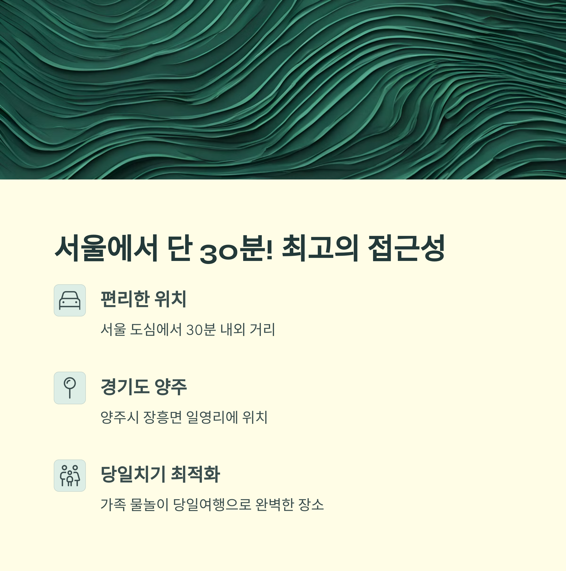 마지막으로, 양주 일영워터힐은 청결한 시설과 뛰어난 수질 관리로 안심하고 즐길 수 있다는 점이 가장 큰 매력입니다. 비교적 신설된 공간이라 깔끔하고 쾌적하며, 샤워실과 탈의실 등 편의시설 또한 잘 갖춰져 있어 아이들과 함께 방문해도 불편함 없이 하루를 보낼 수 있습니다. 여기에 서울에서 차로 30분 이내 거리라는 접근성까지 더해져 부담 없는 당일치기 여행지로 적격입니다.