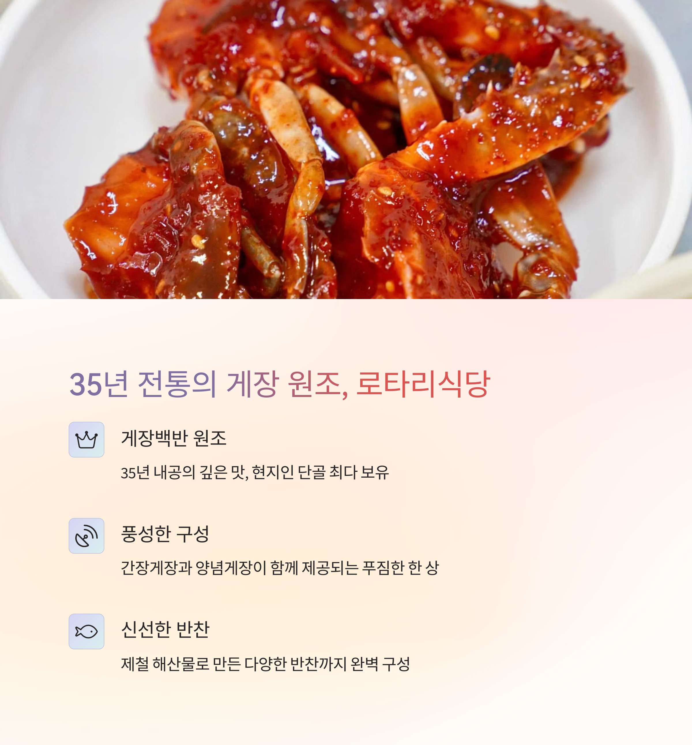 | 전통 간장게장 백반, 담백한 맛의 정수 | 생딸기 찹쌀떡과 다양한 포장 디저트 | 식사+디저트까지 한 번에 둘러보기 |