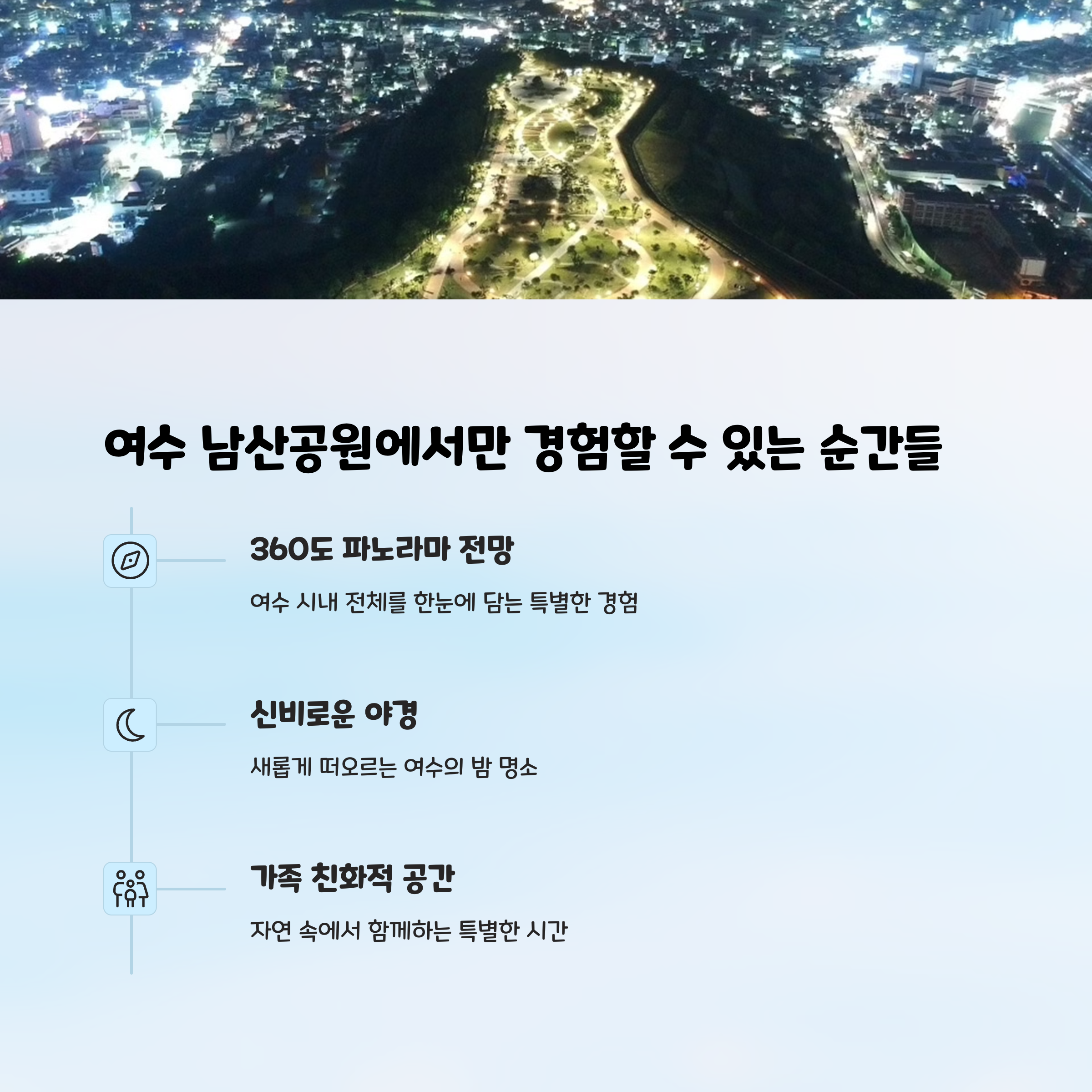 여수 남산공원 특징 | 도심 속 바다 전망과 야경이 돋보이는 공원 |