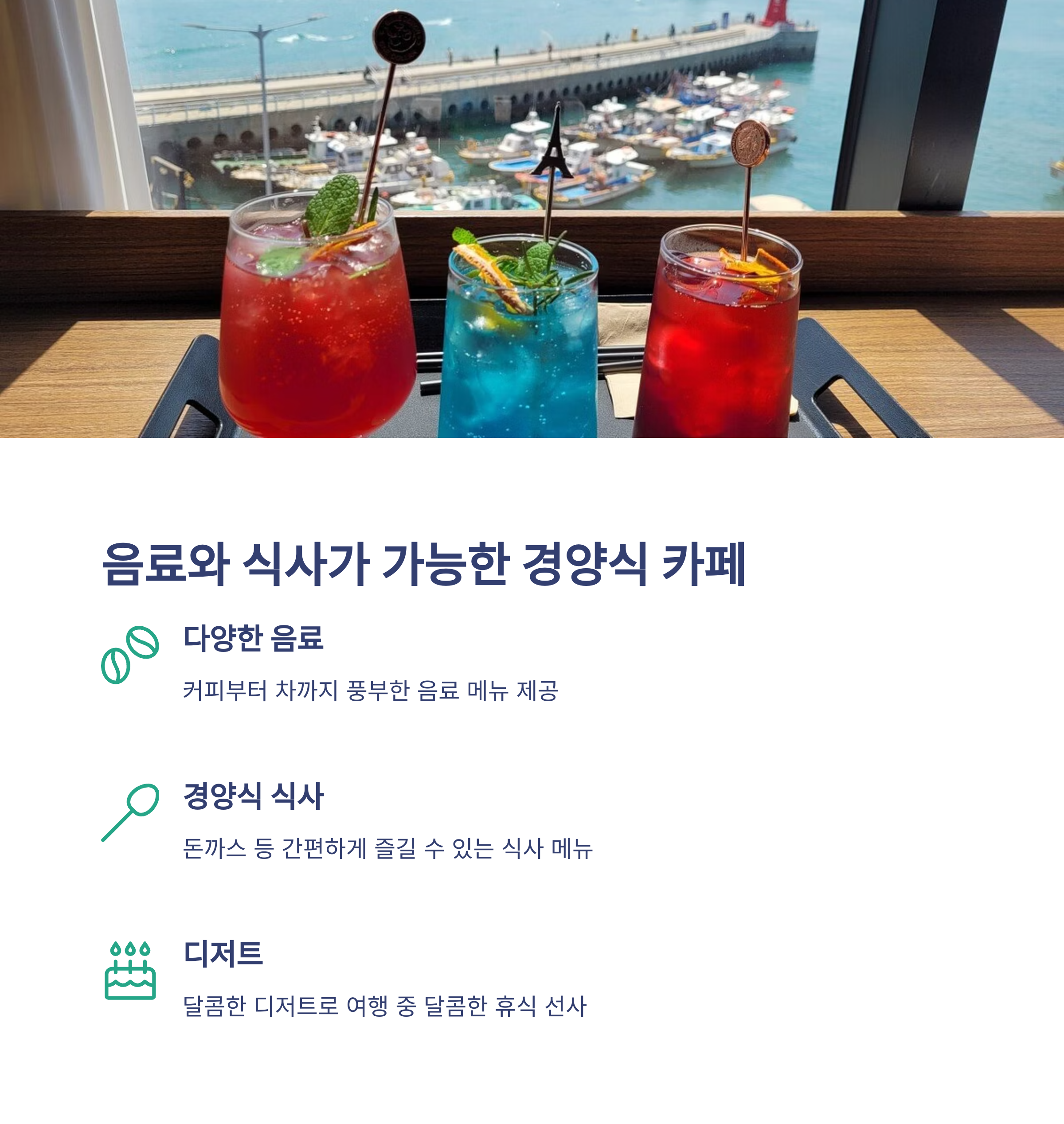 | 여수 감성카페, 웅천 바닷가 | 경양식 + 카페 복합공간 | 계절별 꽃 조경, 사계절 포토스팟 |