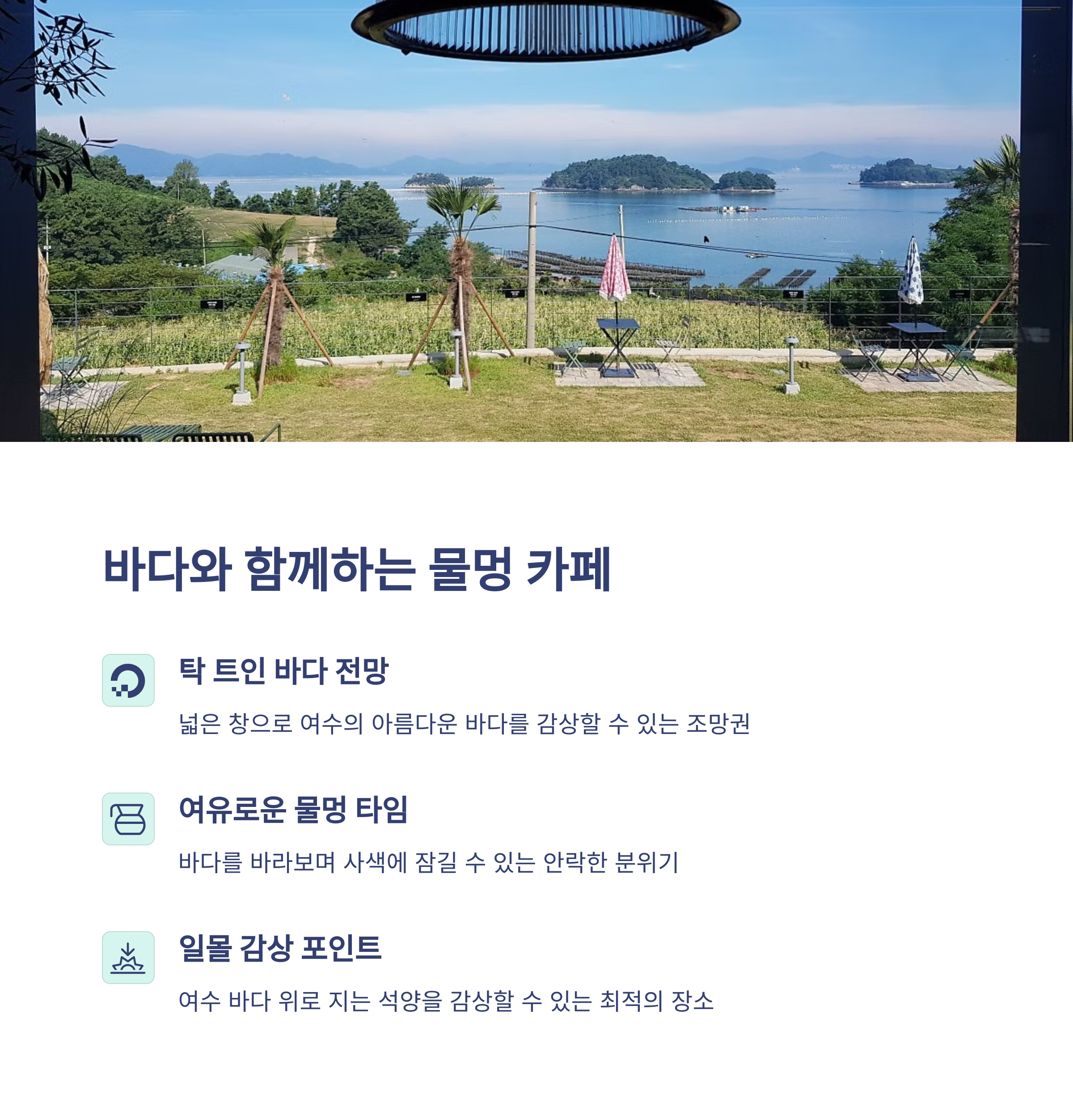 | 위치 | 전남 여수시 웅천동, 바닷가 인근 전망 카페 |