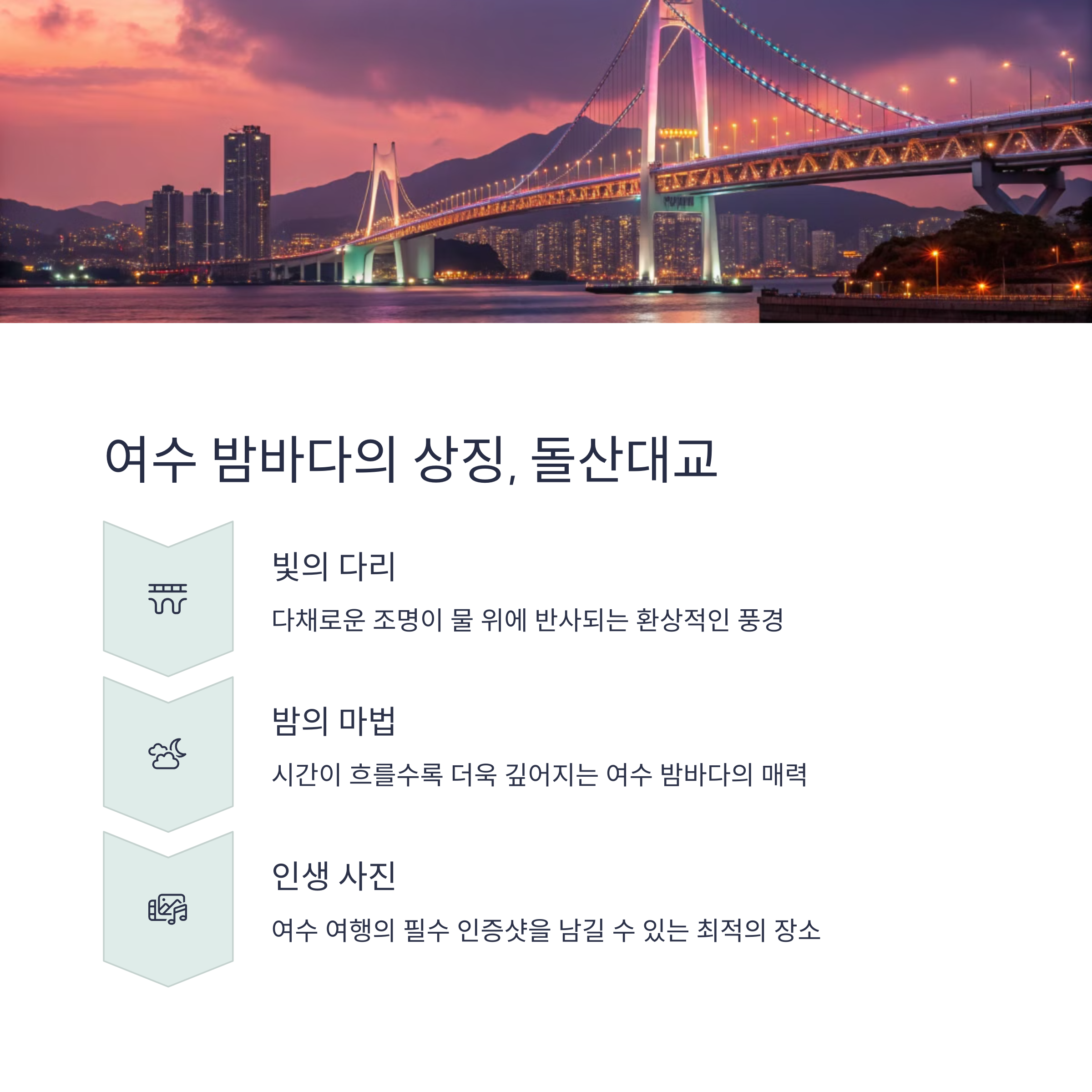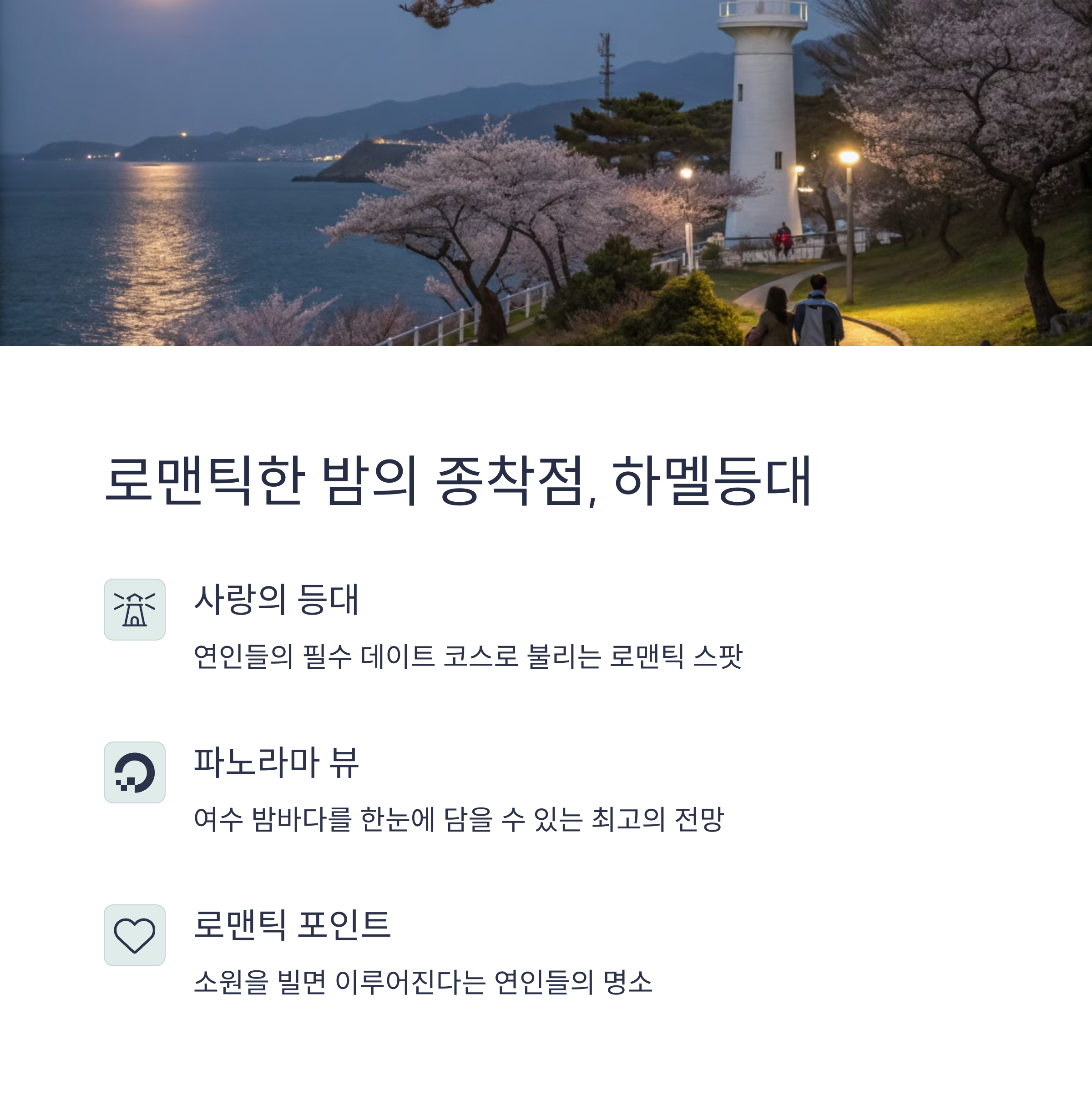 | 밤바다 명소 | 돌산대교, 하멜등대, 여수 해상 케이블카 |