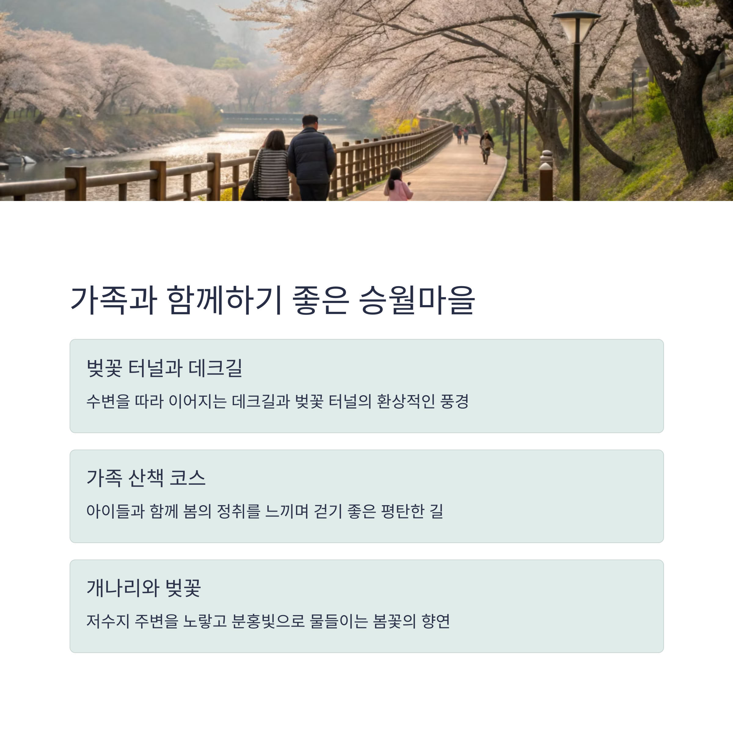 | 추천 코스 | 여수 봉황 자연휴양림, 여수 밤바다 벚꽃로, 용월사, 승월마을 |