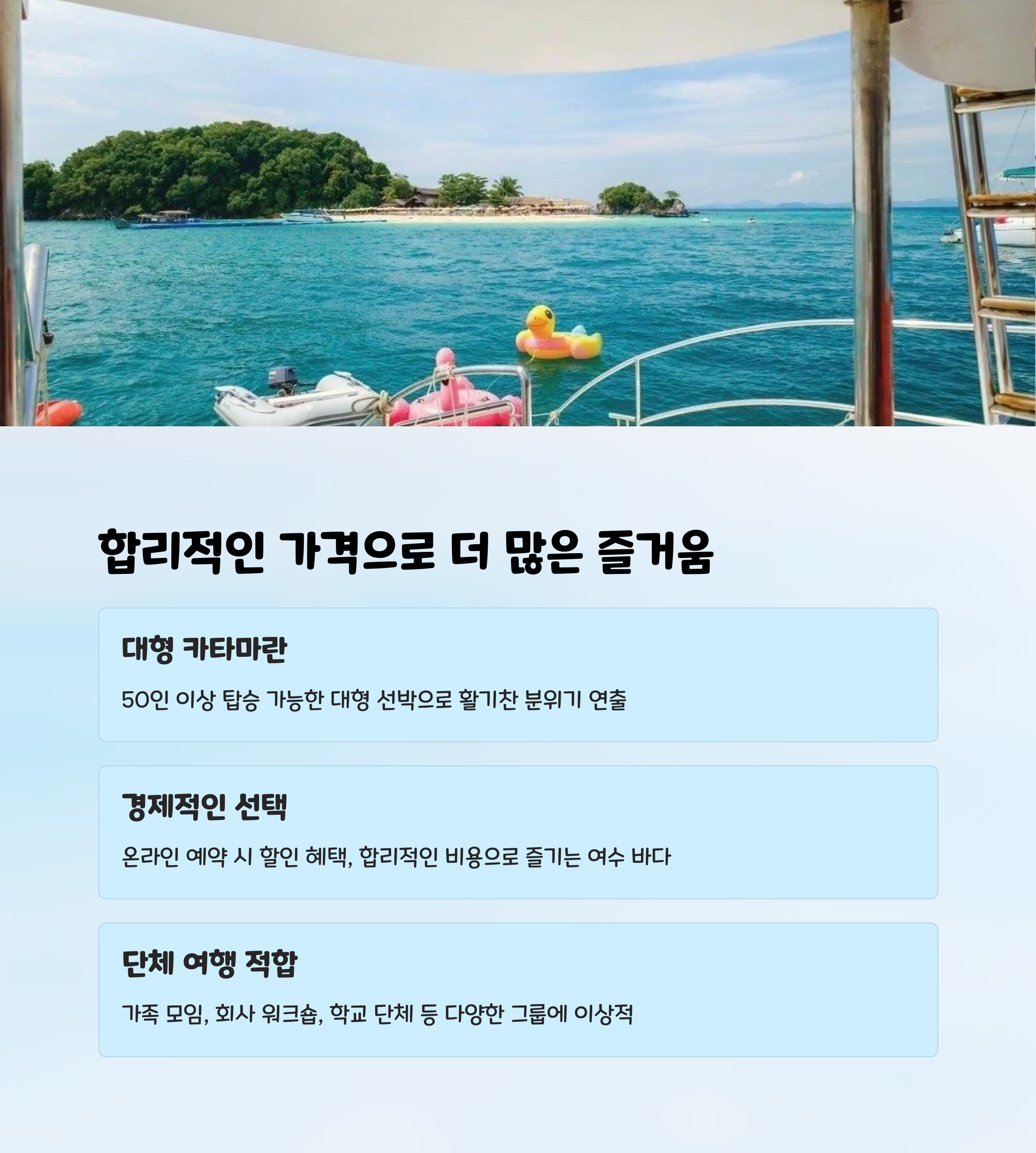 | 전통 유람선 특징 | 다양한 코스·체험·해설 제공, 합리적 가격, 단체 적합 |