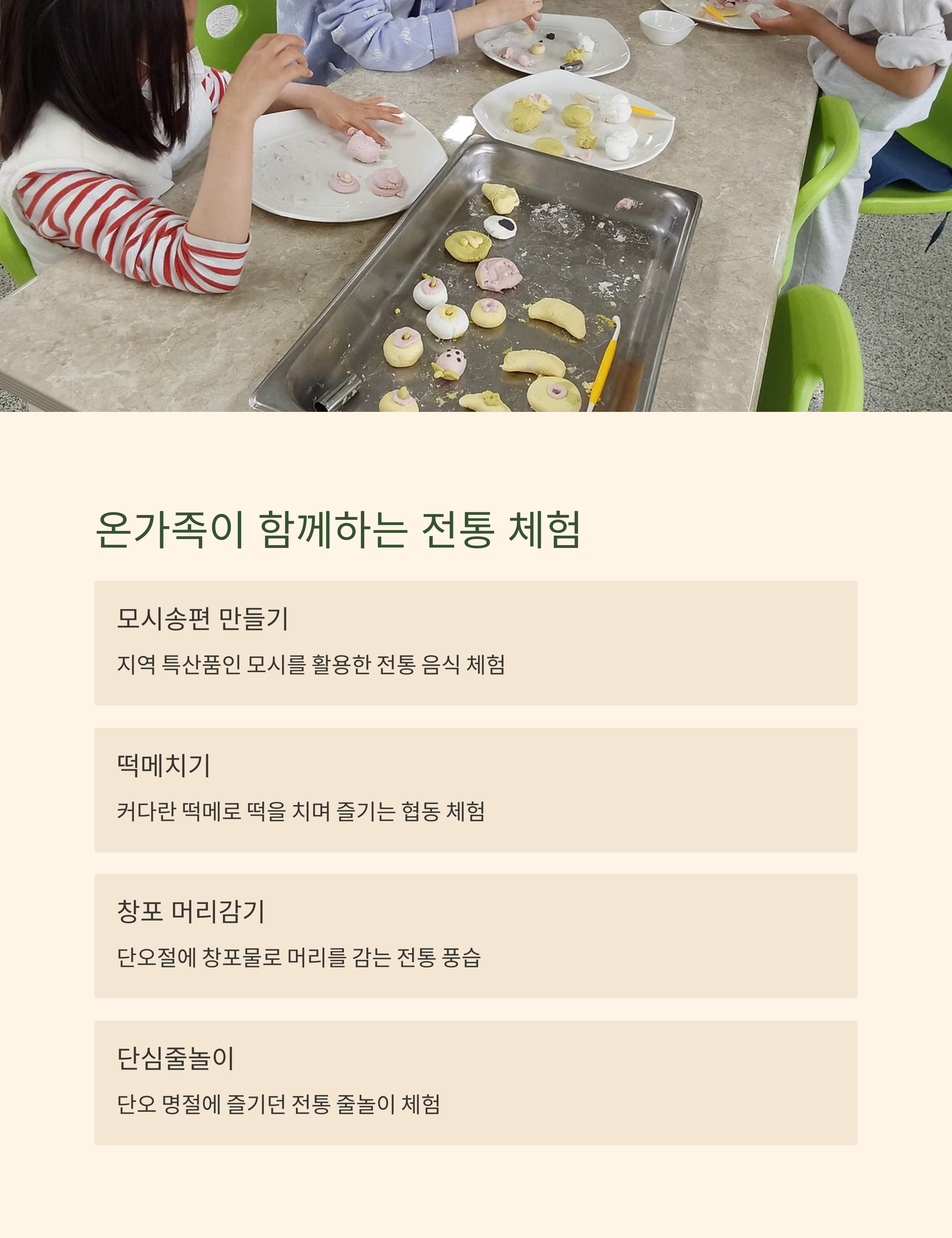 | 주요 체험 | 전통 행사 | 특별 프로그램 |
