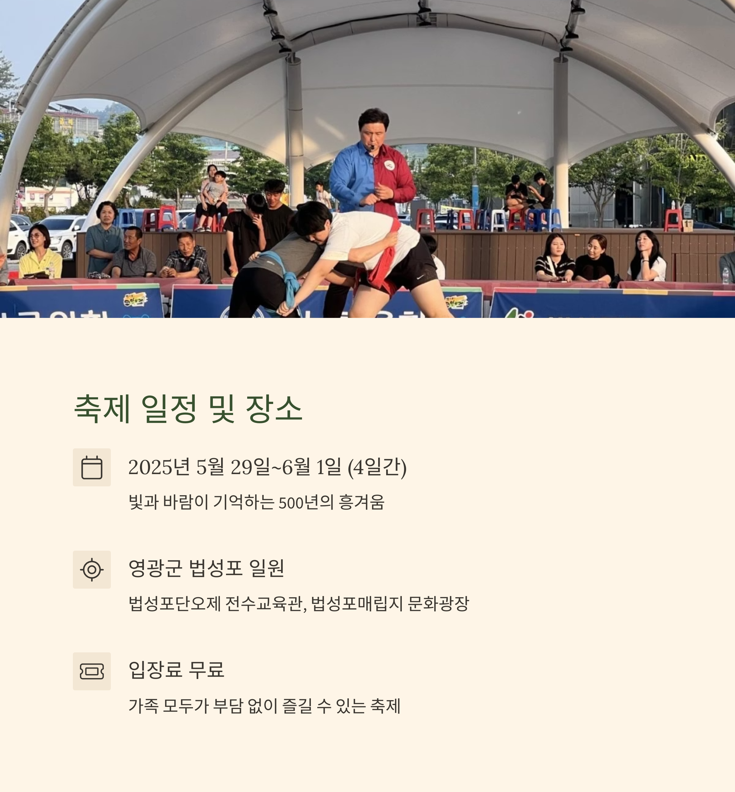 | 주요 장소 | 법성포단오제 전수교육관, 법성포매립지 문화광장 일대 |