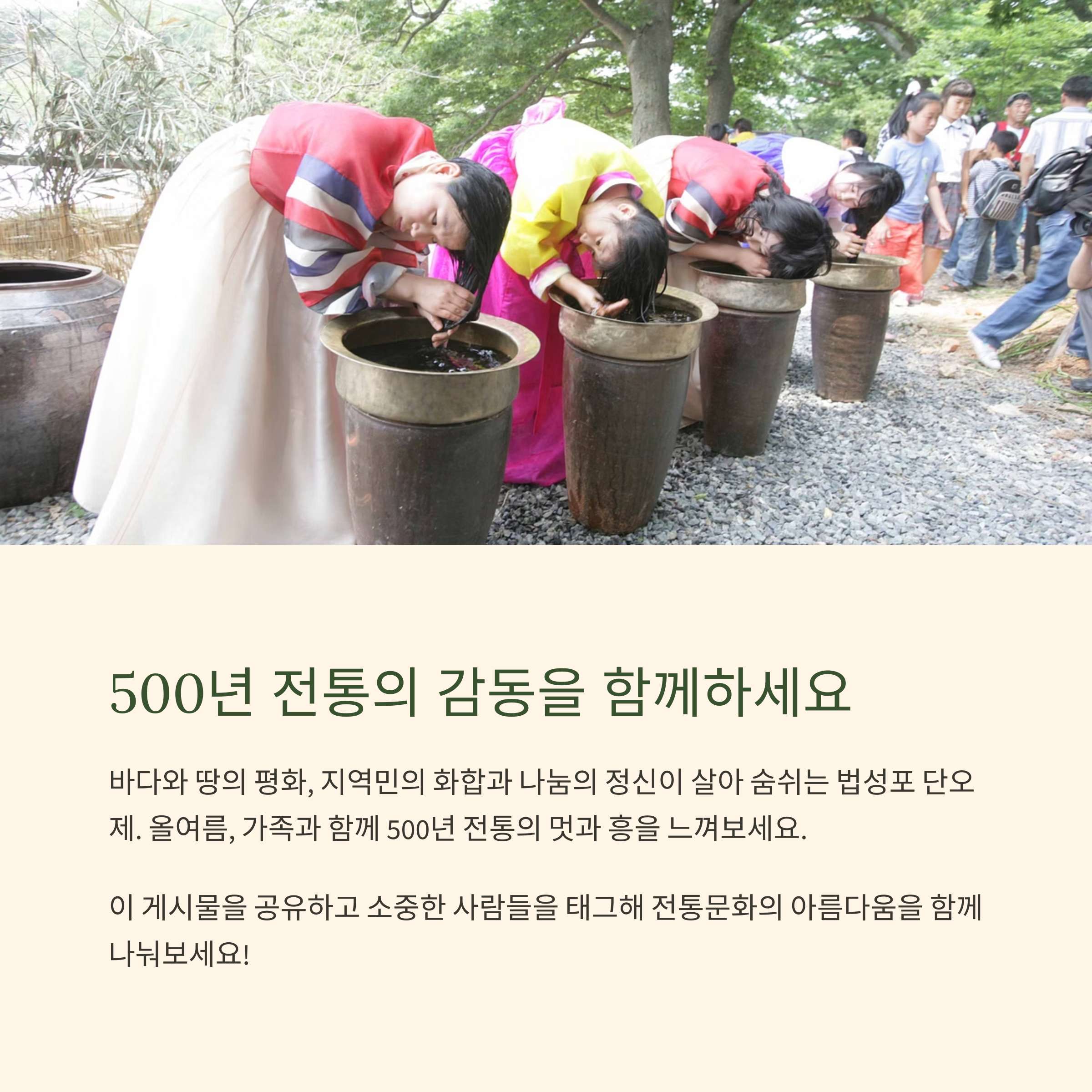 법성포 단오제는 지역 주민들의 자발적인 참여와 전통 계승을 통해 ‘공동체의 축제’로 성장해왔습니다. 공연과 체험 외에도 지역 먹거리, 다문화 행사, 청소년 페스티벌 등 다양한 현대적 콘텐츠가 가미되어 세대를 아우르는 행사로 주목받고 있습니다. 전통과 현대가 어우러지는 그 현장은 누구에게나 의미 있는 기억으로 남을 것입니다.