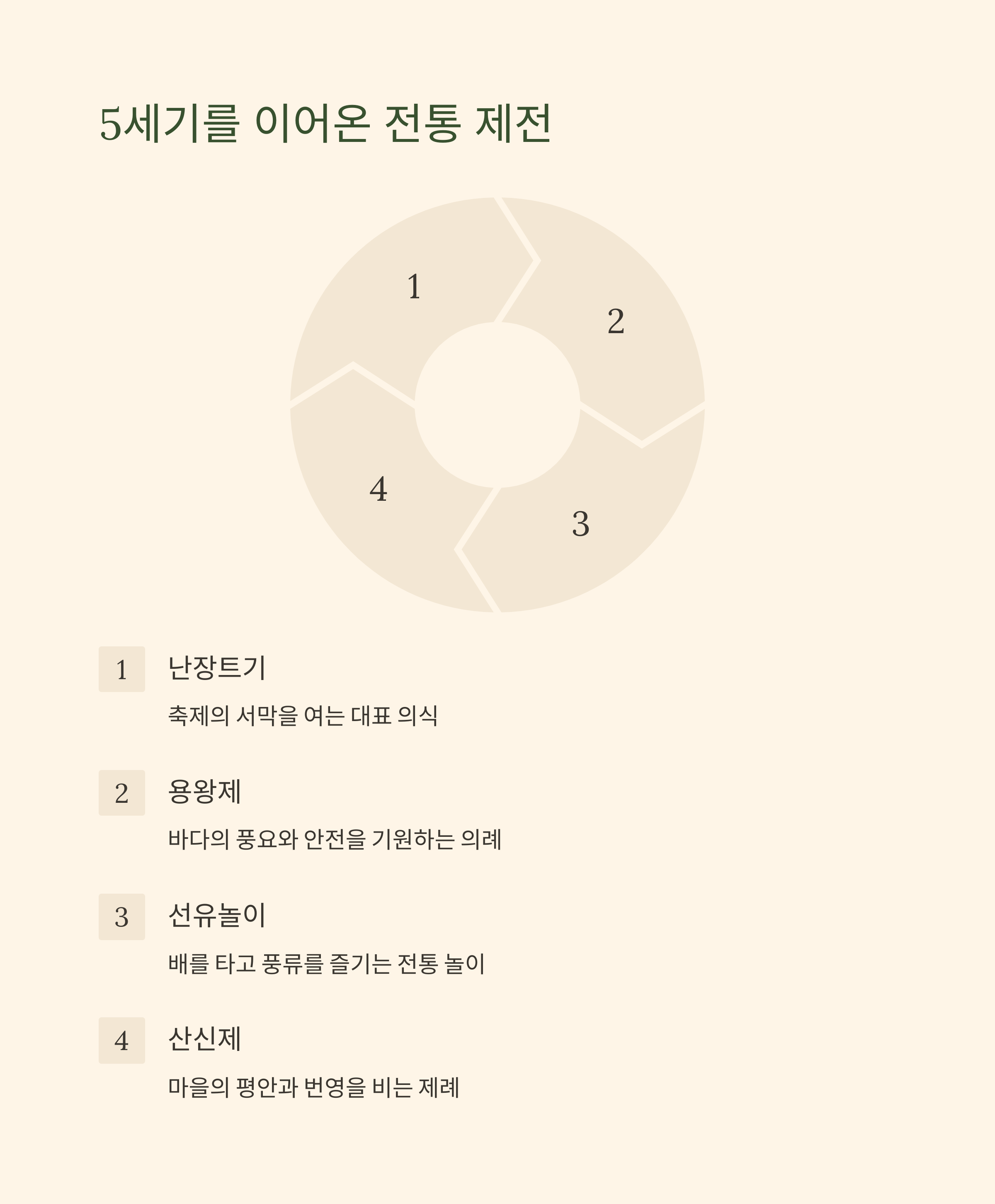 영광 법성포 단오제는 500년 전통을 이어오는 민속문화축제로, 가족 단위 방문객은 물론 지역과 전통을 체험하고 싶은 여행자들에게도 소중한 기회를 제공합니다. 모시송편을 직접 만들어보고, 제례와 놀이, 공연이 어우러지는 축제의 장에서 옛 조상들의 지혜와 삶의 흥취를 느껴보세요. 6월, 진짜 한국의 멋을 보고 싶다면 단오제만 한 곳이 없습니다.