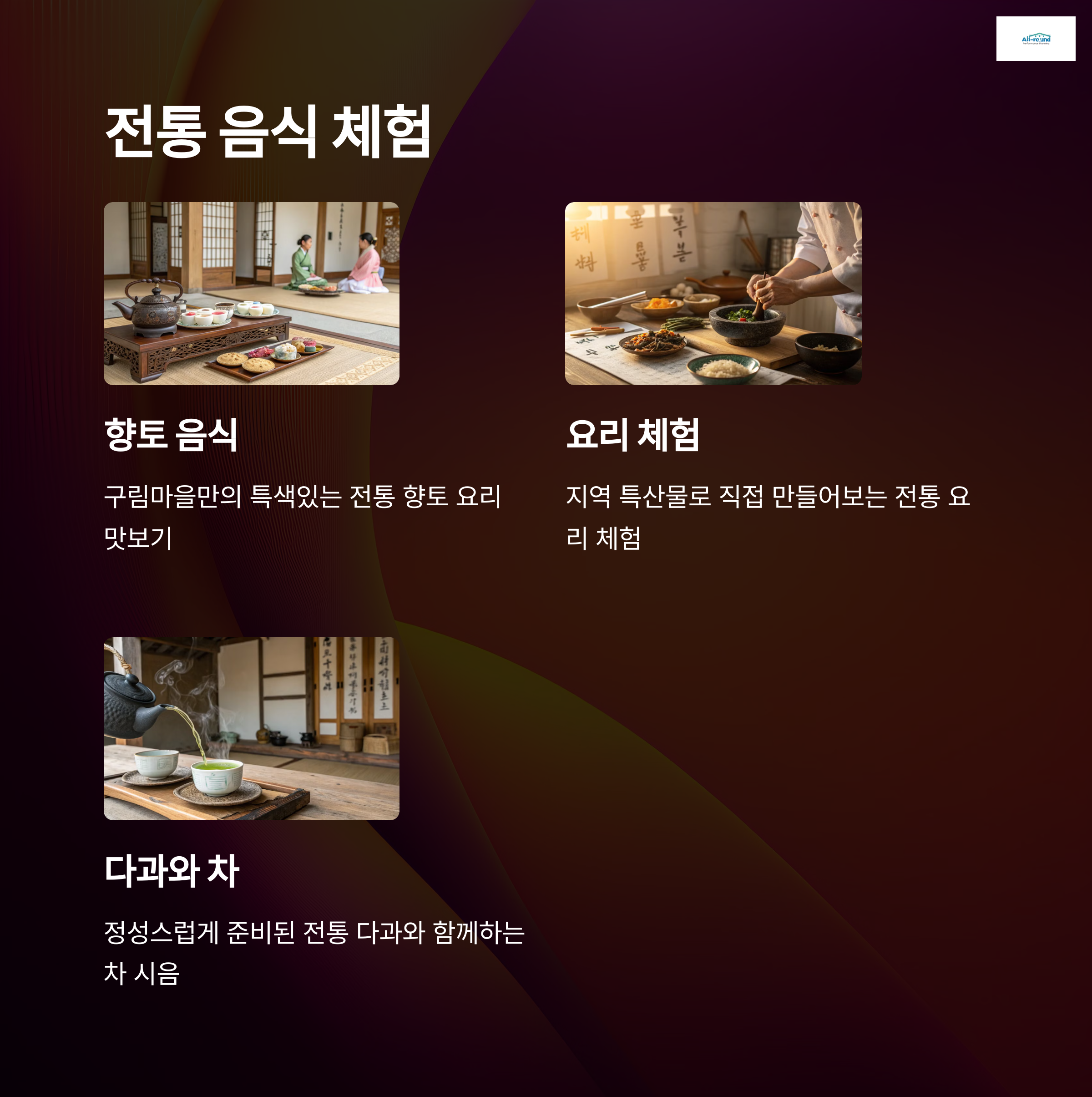 - 전통 음식 체험: 지역 특산물과 전통 음식을 맛보며 특별한 미식 경험