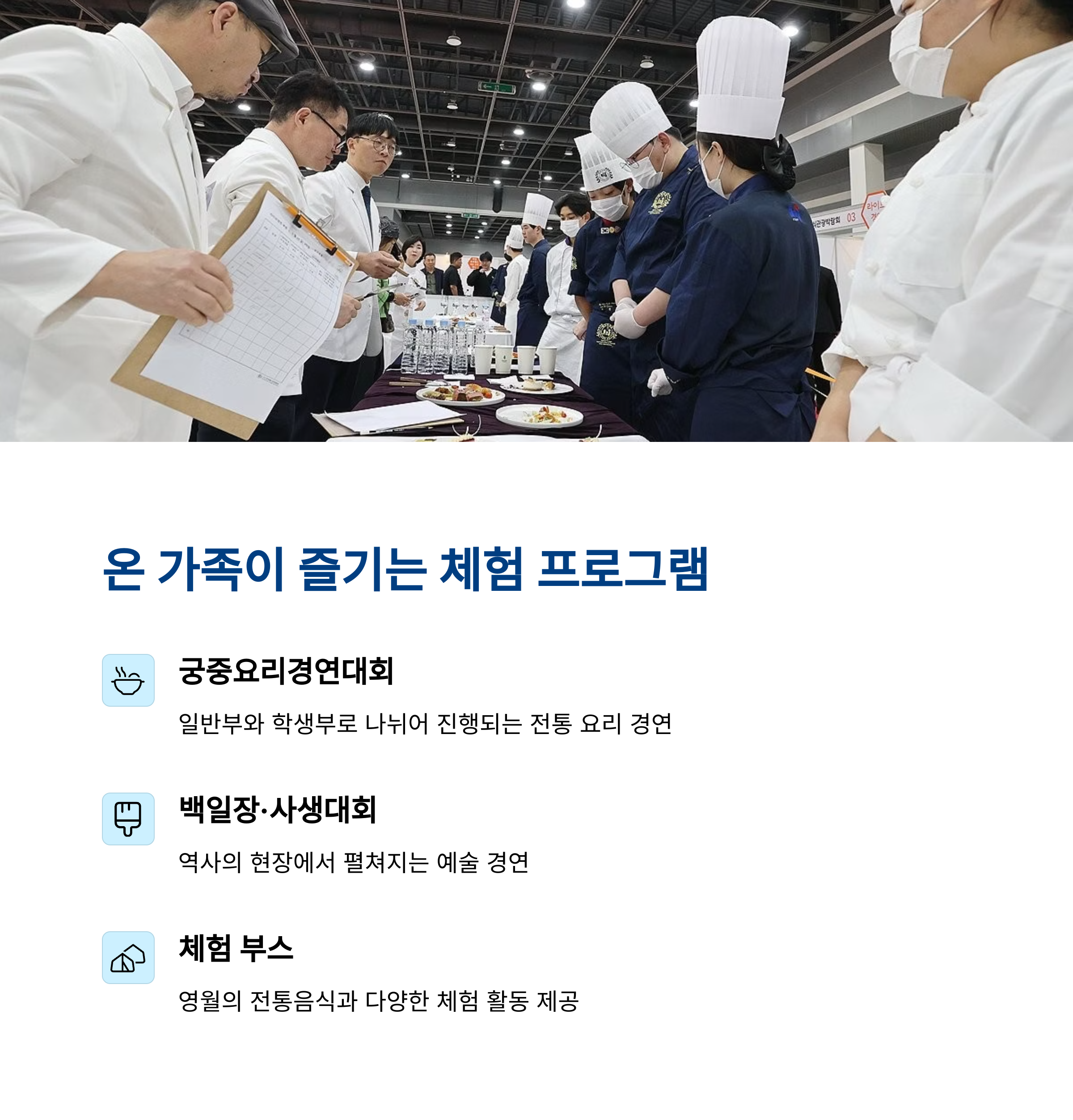 궁중요리경연 및 왕후 선발대회 꽃길 퍼레이드와 지역 예술 공연 세계유산 장릉에서의 감동적 체험