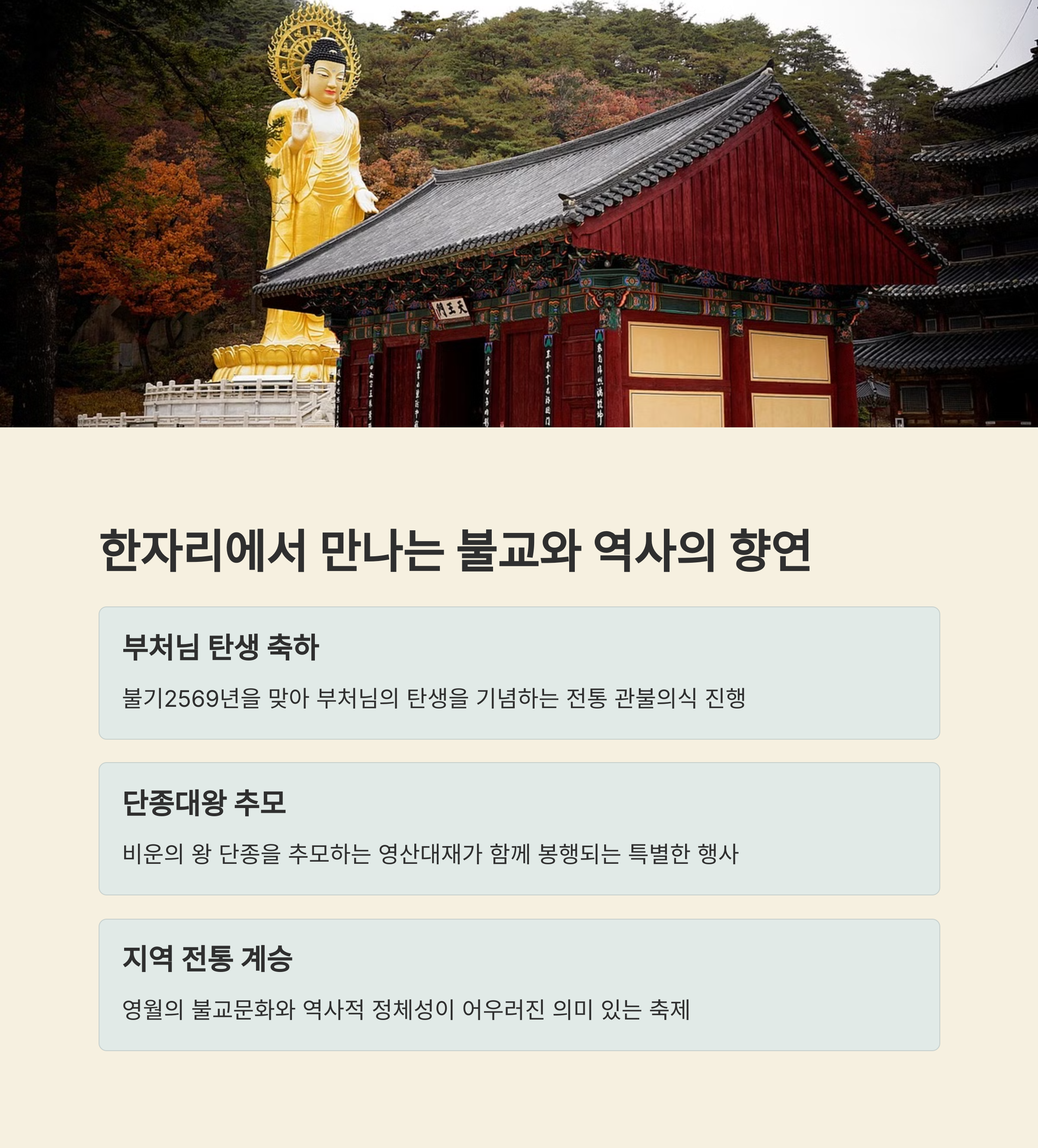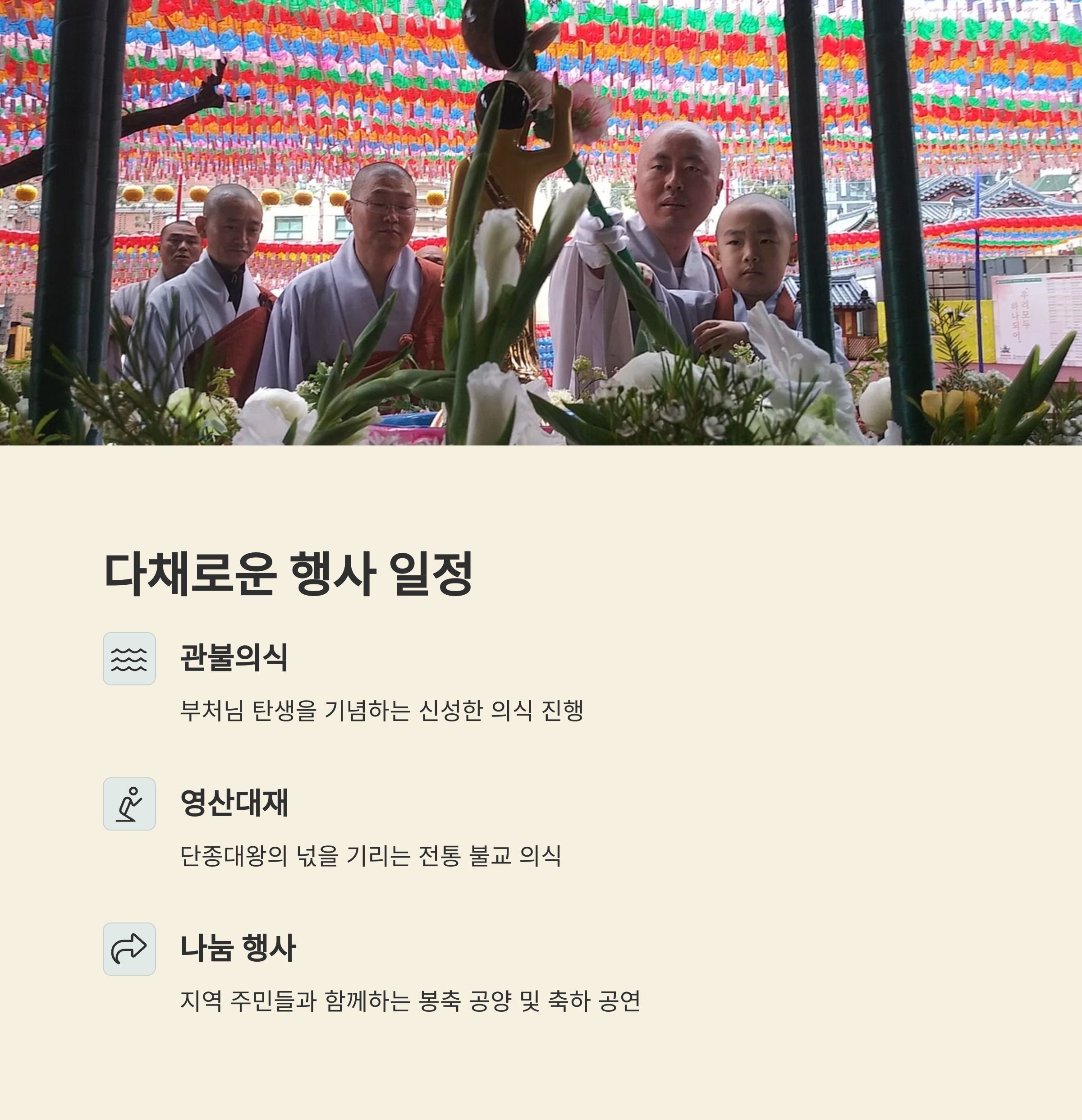 | 행사 특징 | 부처님 탄생 기념 + 단종 추모 의식 동시 진행 |
