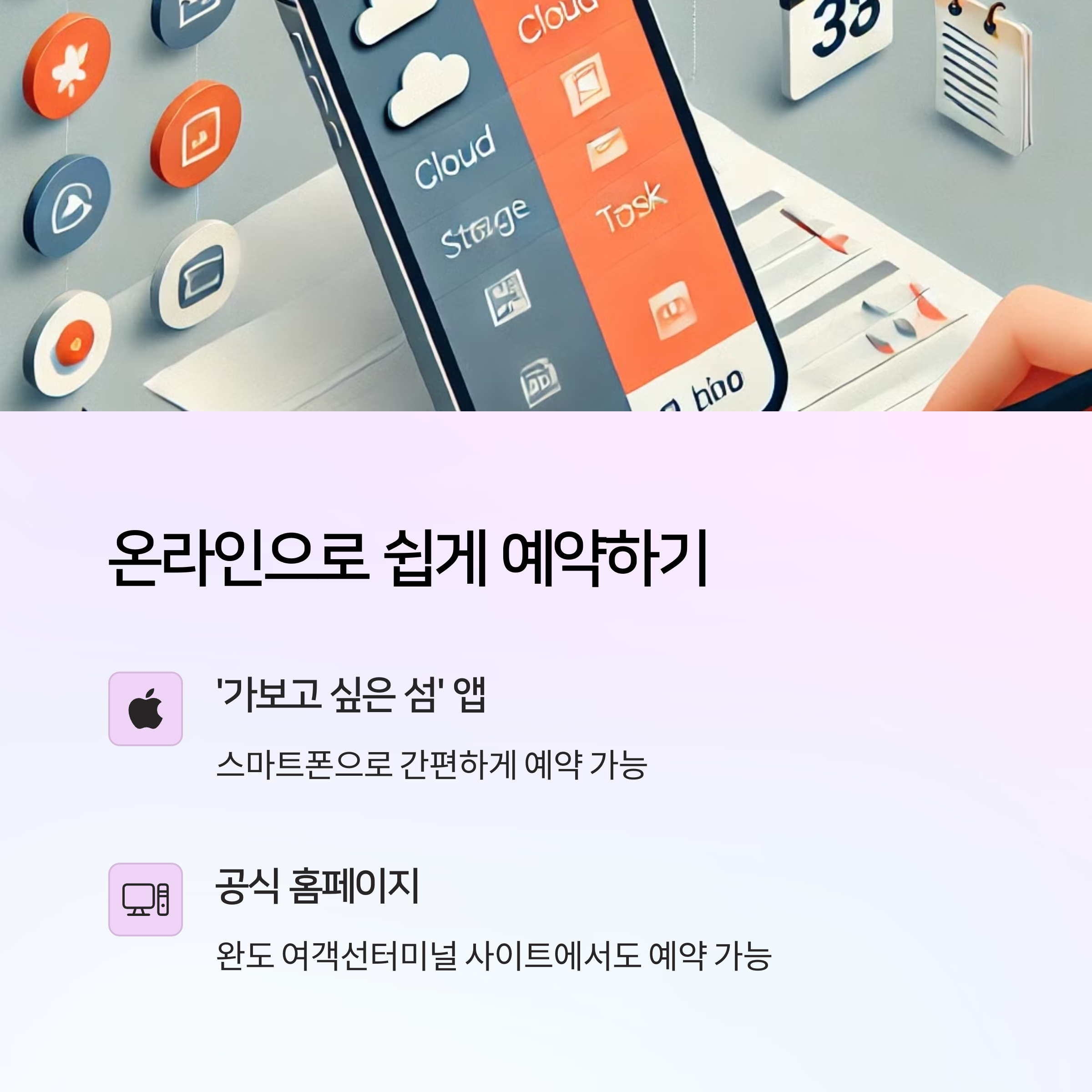 예약 방법 '가보고 싶은 섬' 앱 또는 완도 여객선 홈페이지 이용