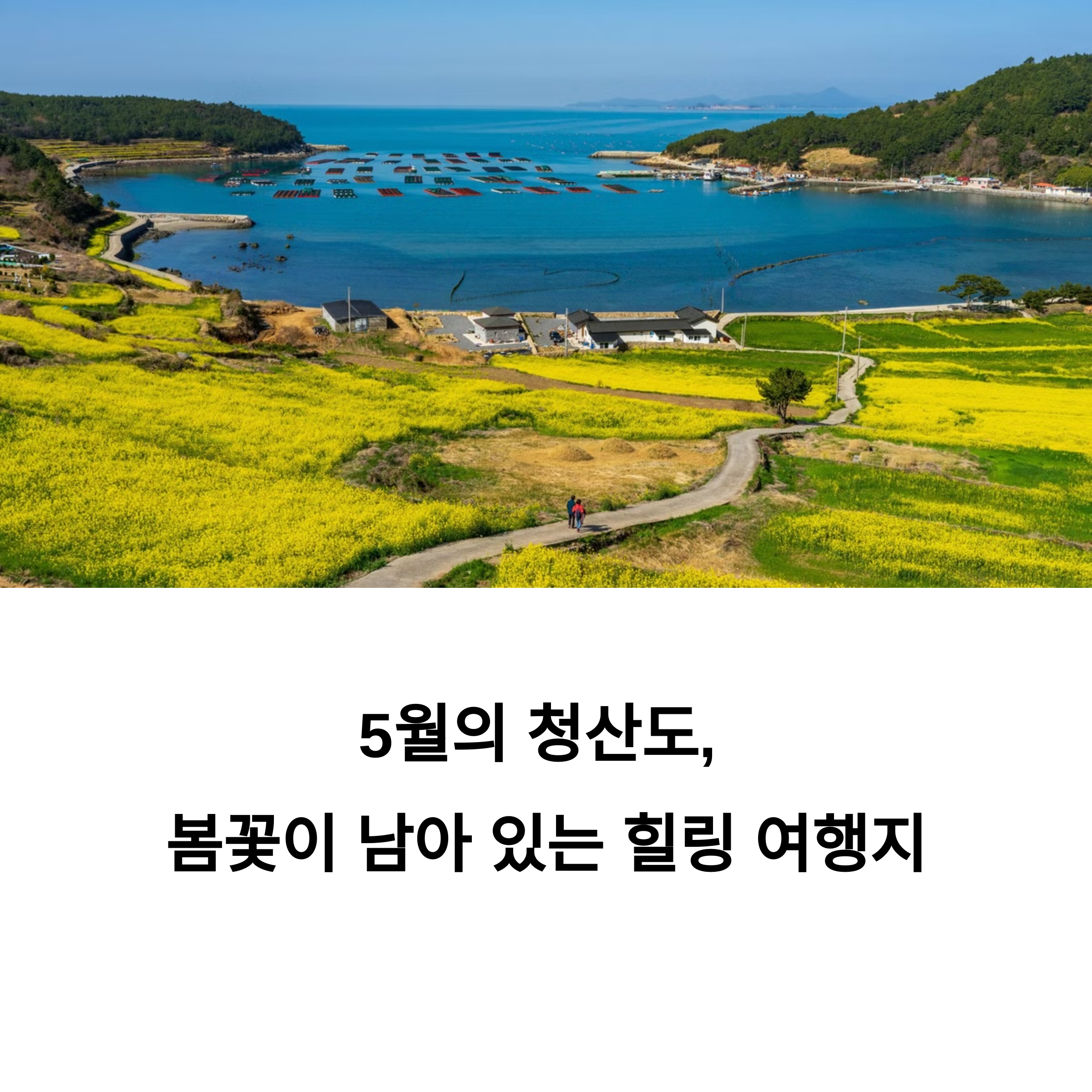 5월의 청산도는 유채의 잔향과 초록의 청보리, 그리고 바다와 영화 속 풍경이 어우러진 조용한 걷기 여행지입니다. 북적이지 않고 여유로운 길 위에서 가벼운 산책과 힐링 사진 여행을 원한다면 청산도는 언제나 만족스러운 선택이 되어줄 것입니다.