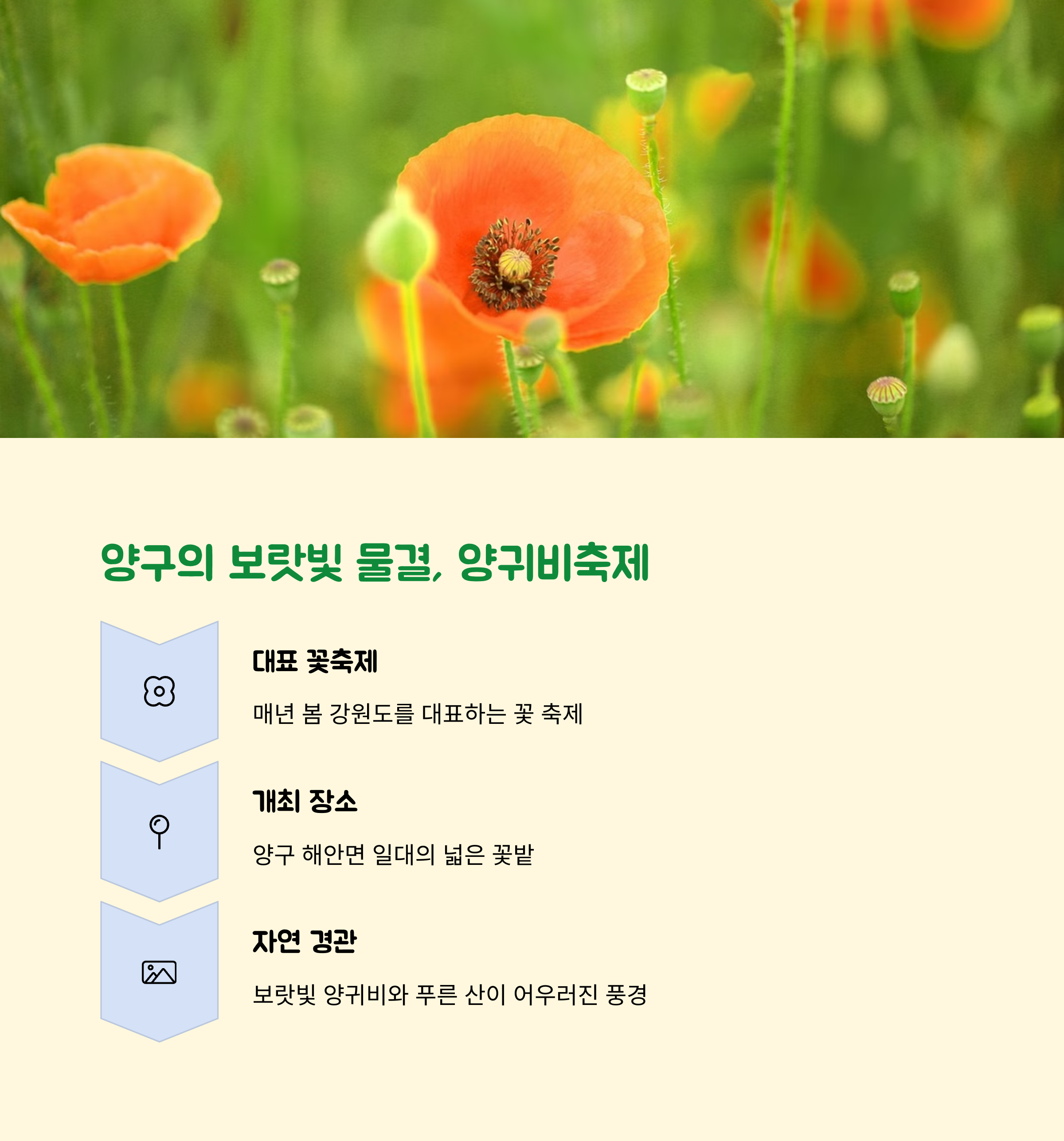 | 양귀비축제 일정 | 2025년 미정 (예상: 5월 중순, 양구 해안면 일대) |