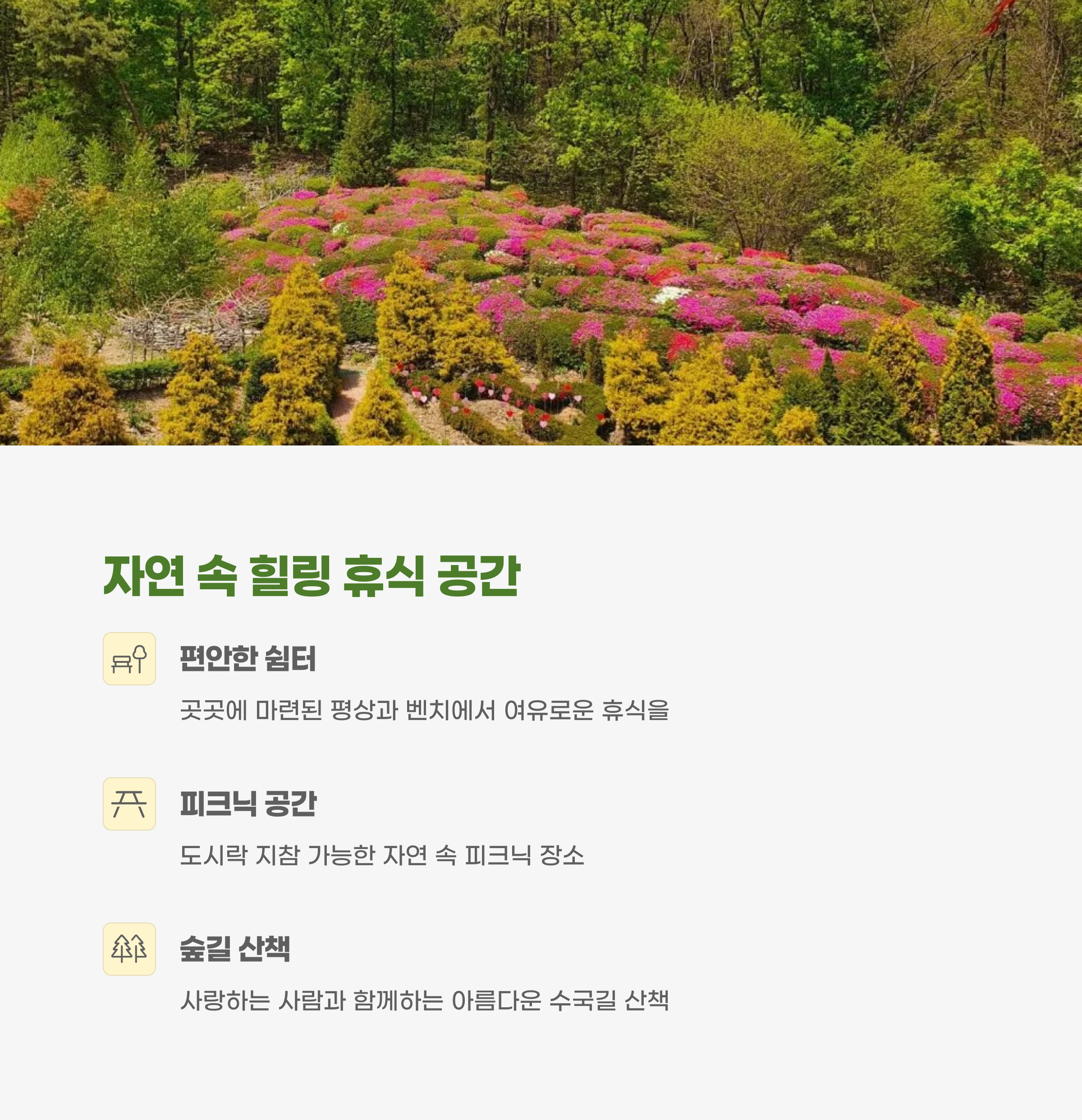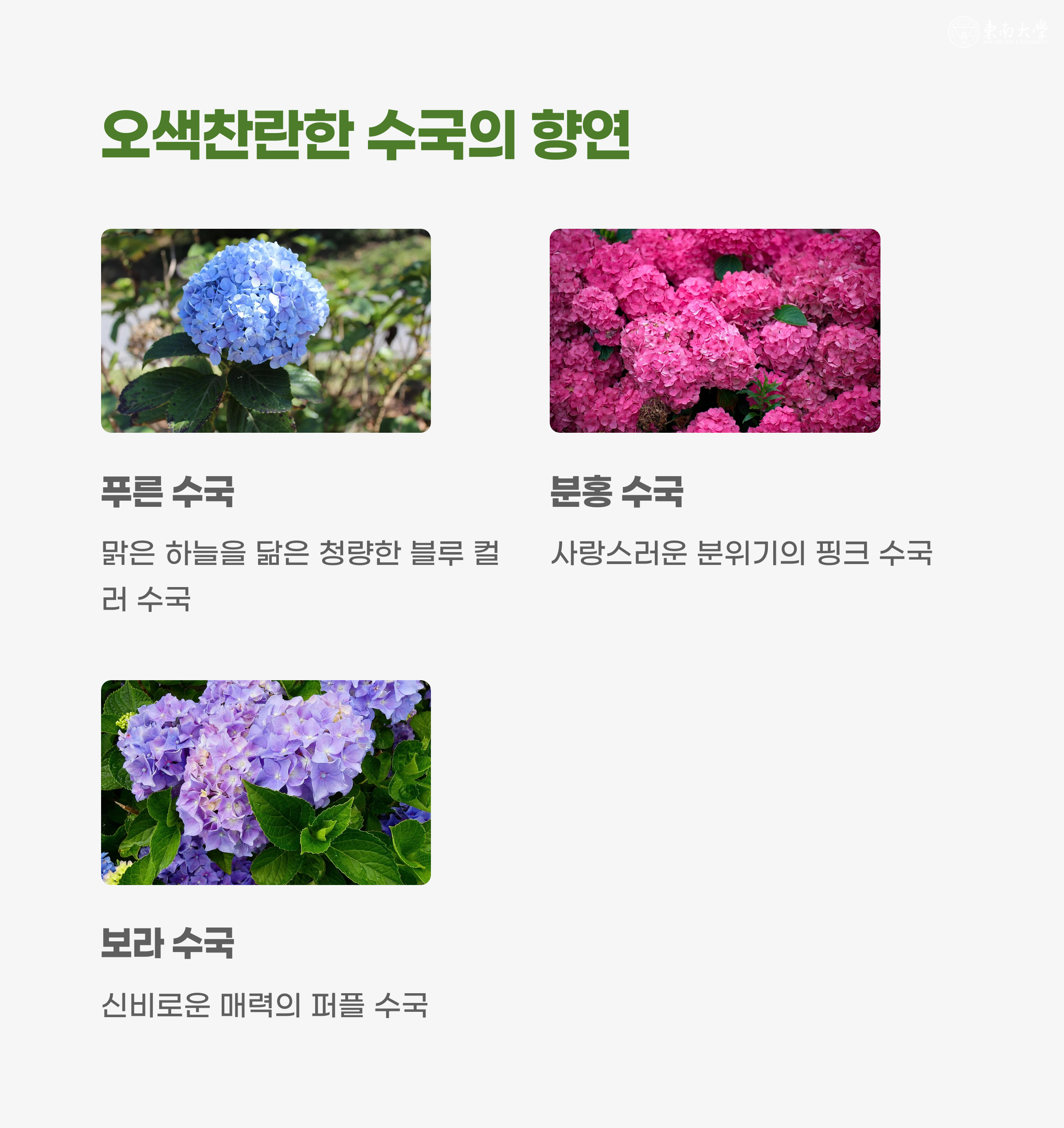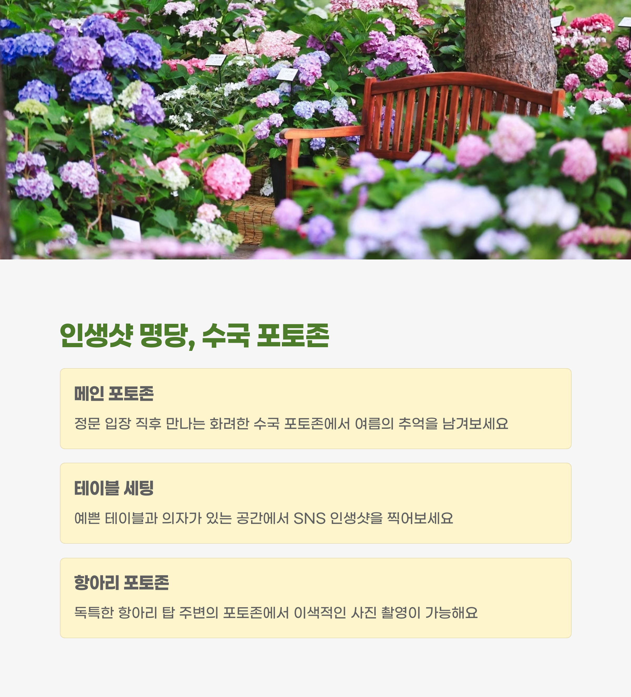 수국 로드, 포토존, 산책로 운영 6월 수국 절정 시기 도시락 반입 가능, 입장료 5,000원