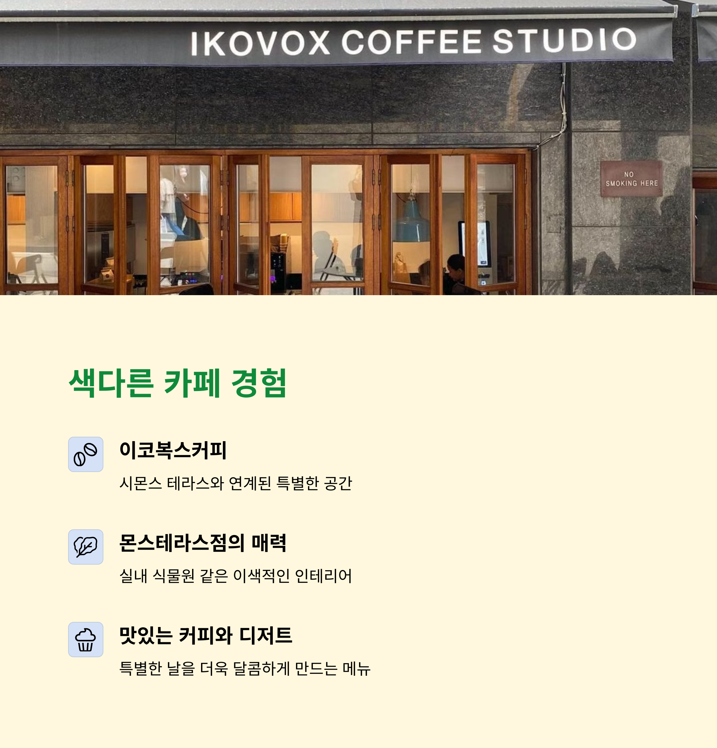 커피, 가구, 문화공간이 결합된 복합공간으로, 데이트 외에도 산책과 전시 관람 등 다양한 체험이 가능합니다.