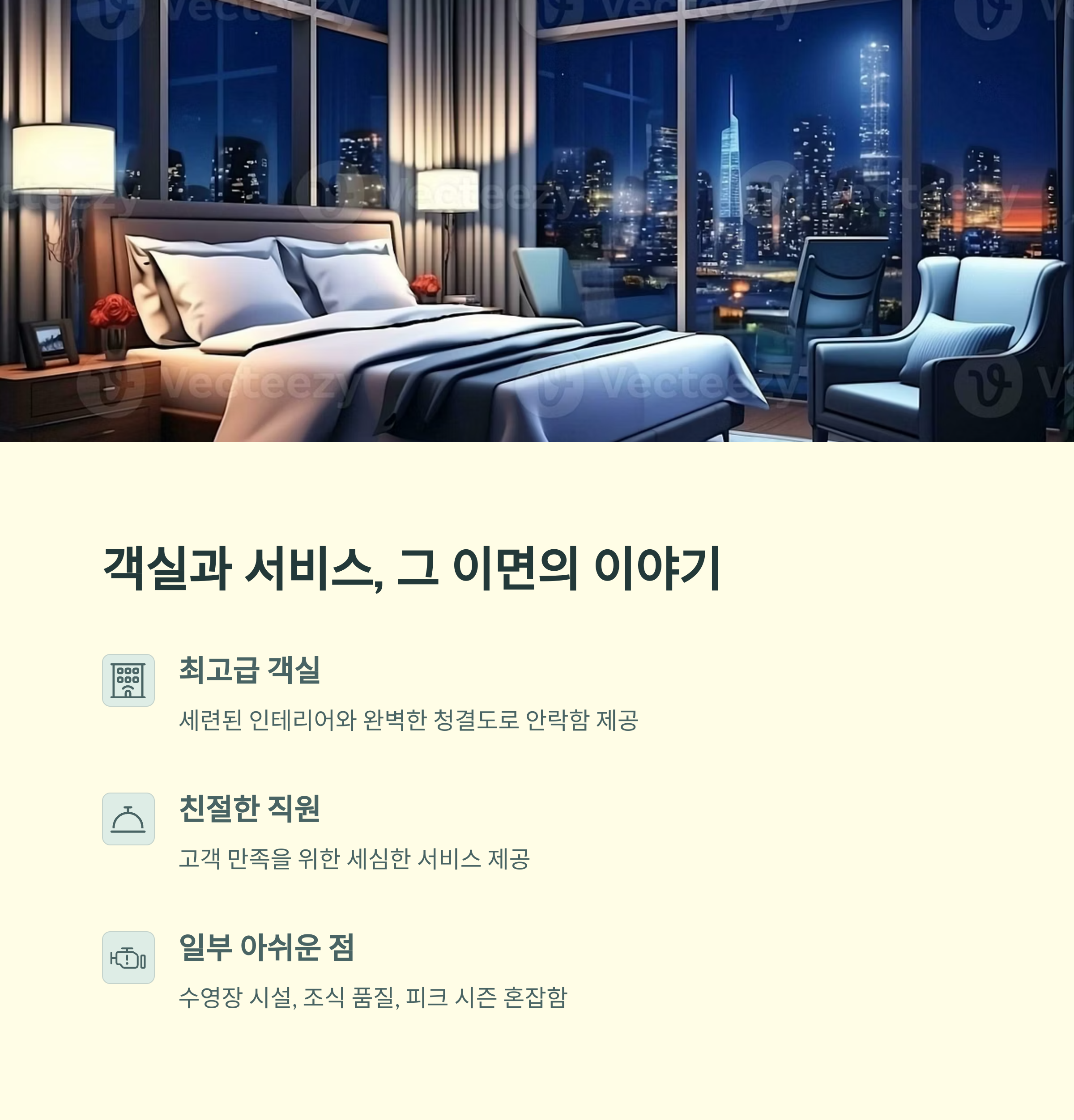 신축 시설, 객실 청결도와 서비스 호평 | 조식 만족도 높고 친절한 직원 응대 | 럭셔리 대 편안함, 복합 시설 대 자연 휴식 |