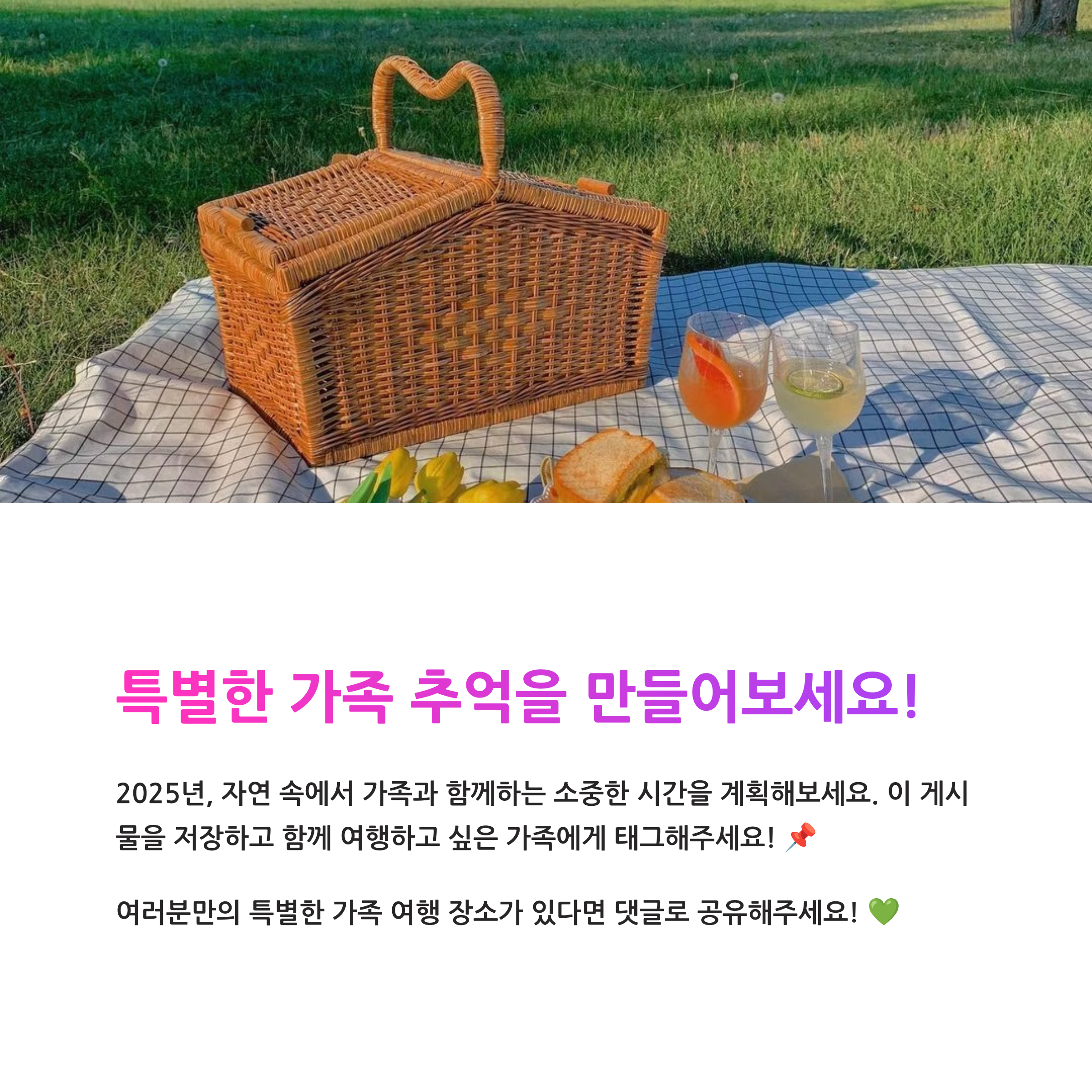 가족과 함께 다녀온 추천 여행지나 기억에 남는 자연 테마 명소가 있다면 댓글로 남겨주세요. 다른 분들께도 큰 도움이 됩니다!