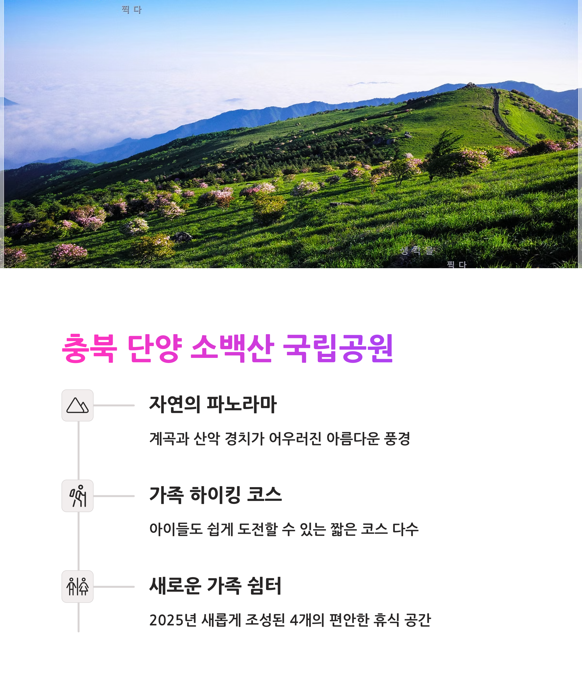 | 인기 추천지 | 한라산 둘레길, 자작나무숲, 소백산, 순천만 습지 |