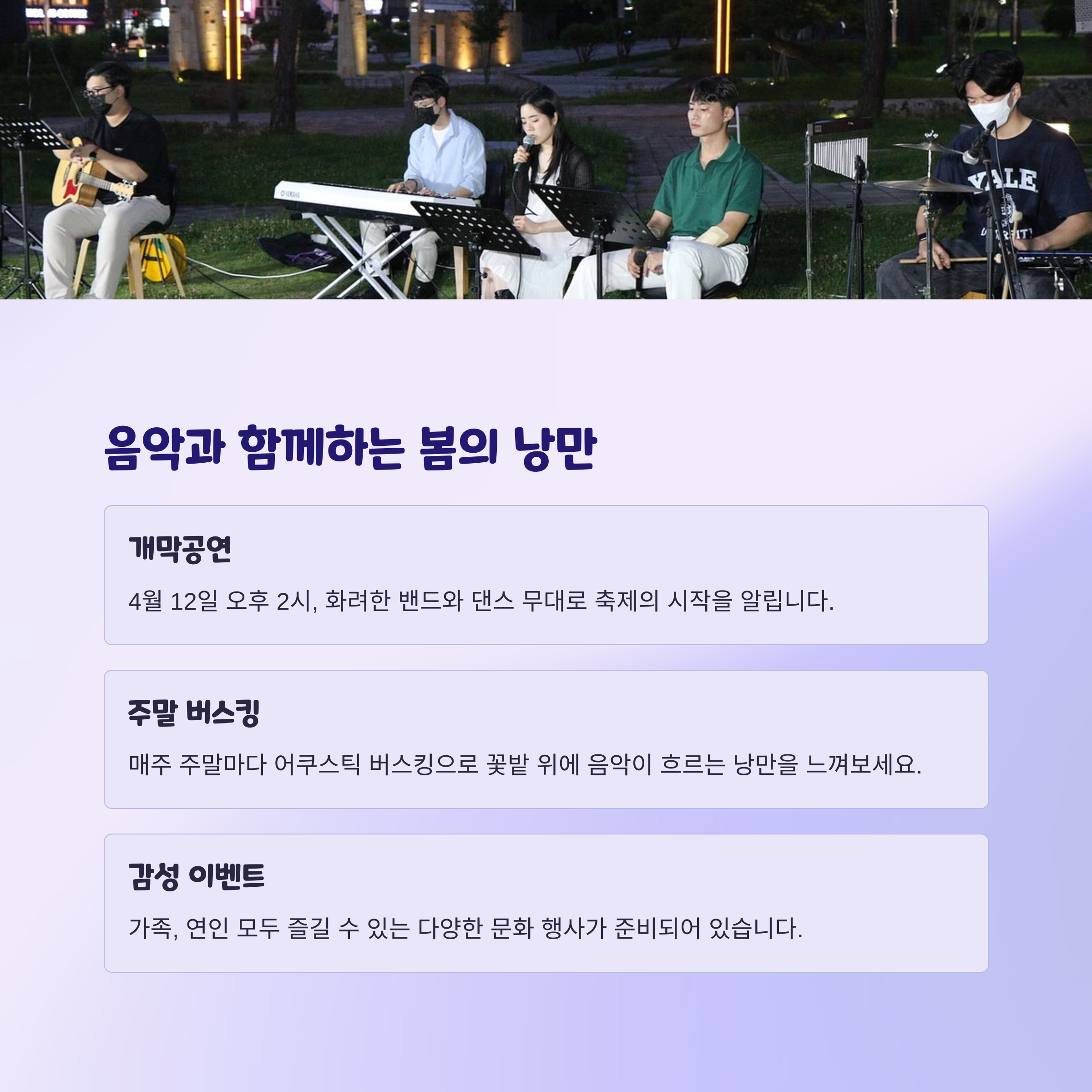 튤립축제 일정 2025년 4월 7일 ~ 4월 30일, 주말 버스킹 진행
