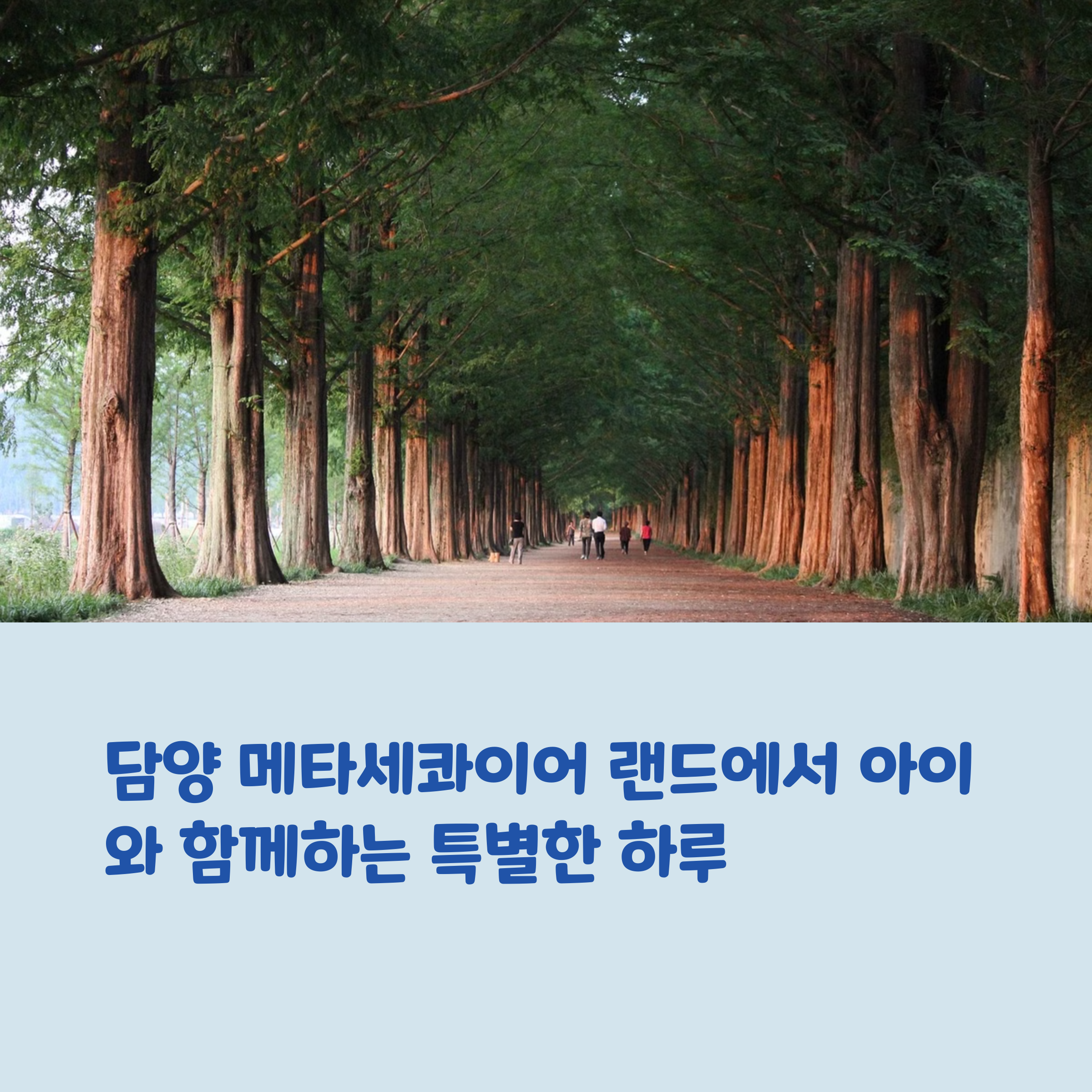 전남 담양의 대표적인 자연 관광지인 메타세콰이어랜드는 아이와 함께하기에 안성맞춤인 힐링 장소입니다. 이곳은 계절마다 다른 분위기를 자아내는 메타세쿼이아 나무길이 있어 봄, 여름, 가을, 겨울 내내 방문객들의 발길이 끊이지 않습니다. 나무길 양쪽에는 그늘이 드리워져 있어 무더운 여름에도 시원하게 산책을 즐길 수 있고, 중간중간 설치된 벤치와 정자에서 가족이 함께 잠시 쉬어가기에도 참 좋습니다. 바람에 흔들리는 나뭇잎 소리를 들으며 걷는 시간은 아이들에게도 큰 자연 체험이 됩니다.