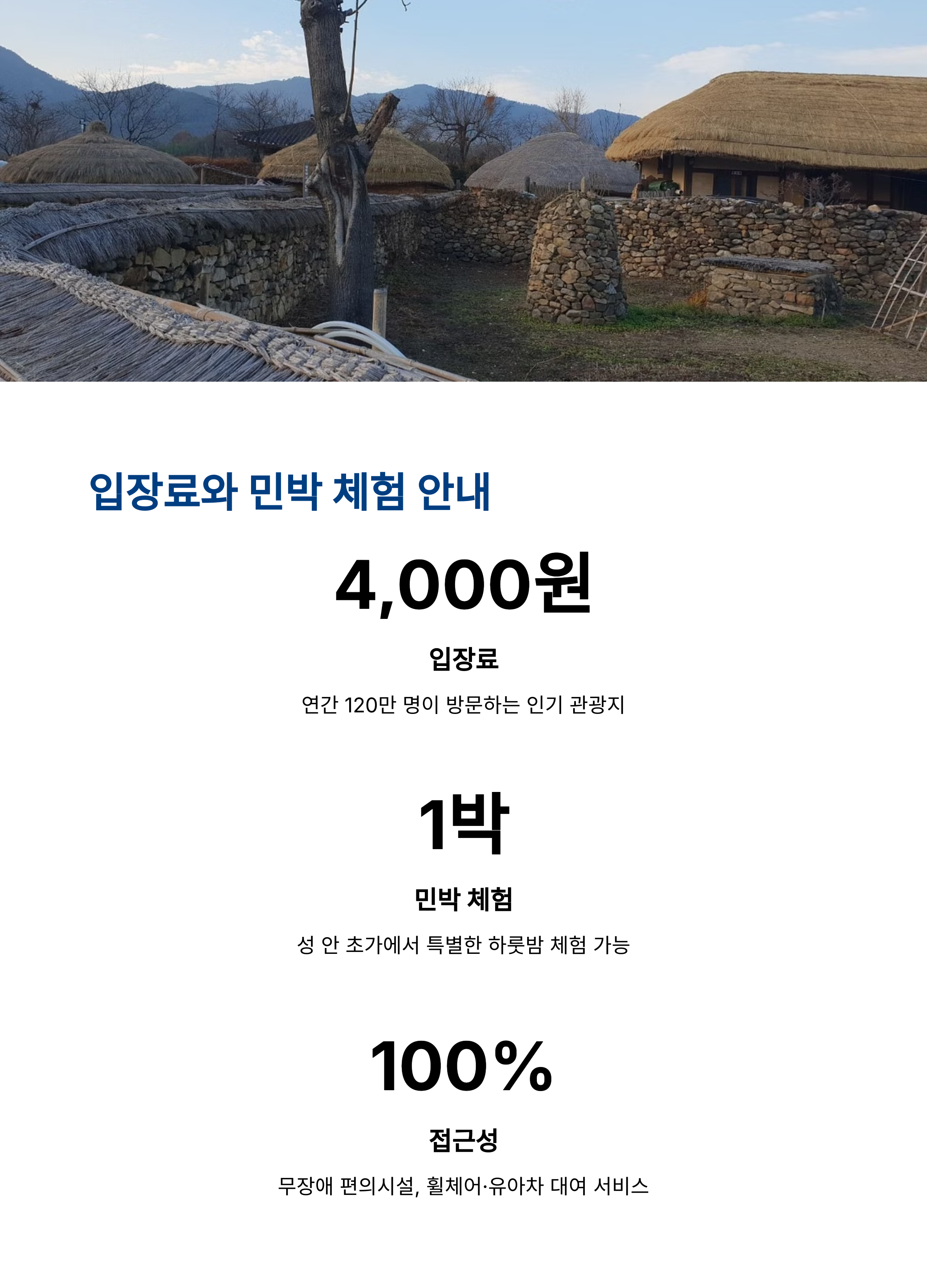 낙안읍성은 단순히 구경만 하는 곳이 아닙니다. 마을에서는 민속놀이 체험, 농기구 체험, 전통음식 만들기 등 다양한 프로그램이 상시 운영되고 있으며, 전통 한옥 민박도 가능해 하루쯤 머물며 조용한 밤 풍경을 즐기기에도 좋습니다. 입장료는 4,000원으로, 이 정도 가격에 남도의 역사와 일상을 모두 경험할 수 있다는 점에서 가성비가 뛰어난 여행지입니다.