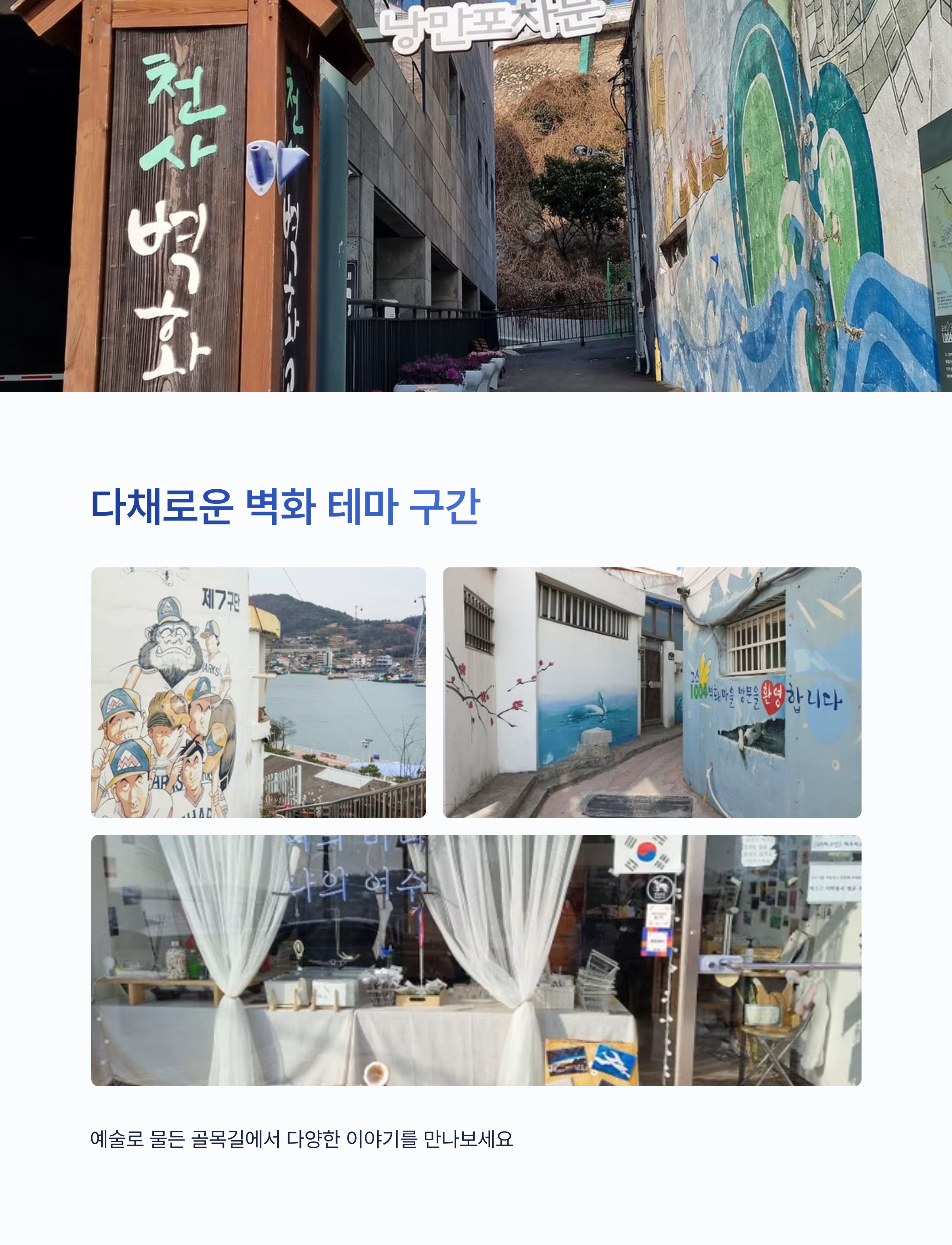여수 고소동 벽화마을은 단순한 골목길이 아닌, 여수의 과거와 현재를 잇는 감성 여행지입니다. 천사벽화골목을 따라 걷다 보면 자신도 모르게 시간에 젖고, 바다와 예술, 사람의 이야기가 어우러진 따뜻한 공간에 빠져들게 됩니다. 이번 봄 또는 여름, 특별한 여행을 계획하고 있다면 고소동의 감성을 꼭 한 번 느껴보시길 바랍니다.
