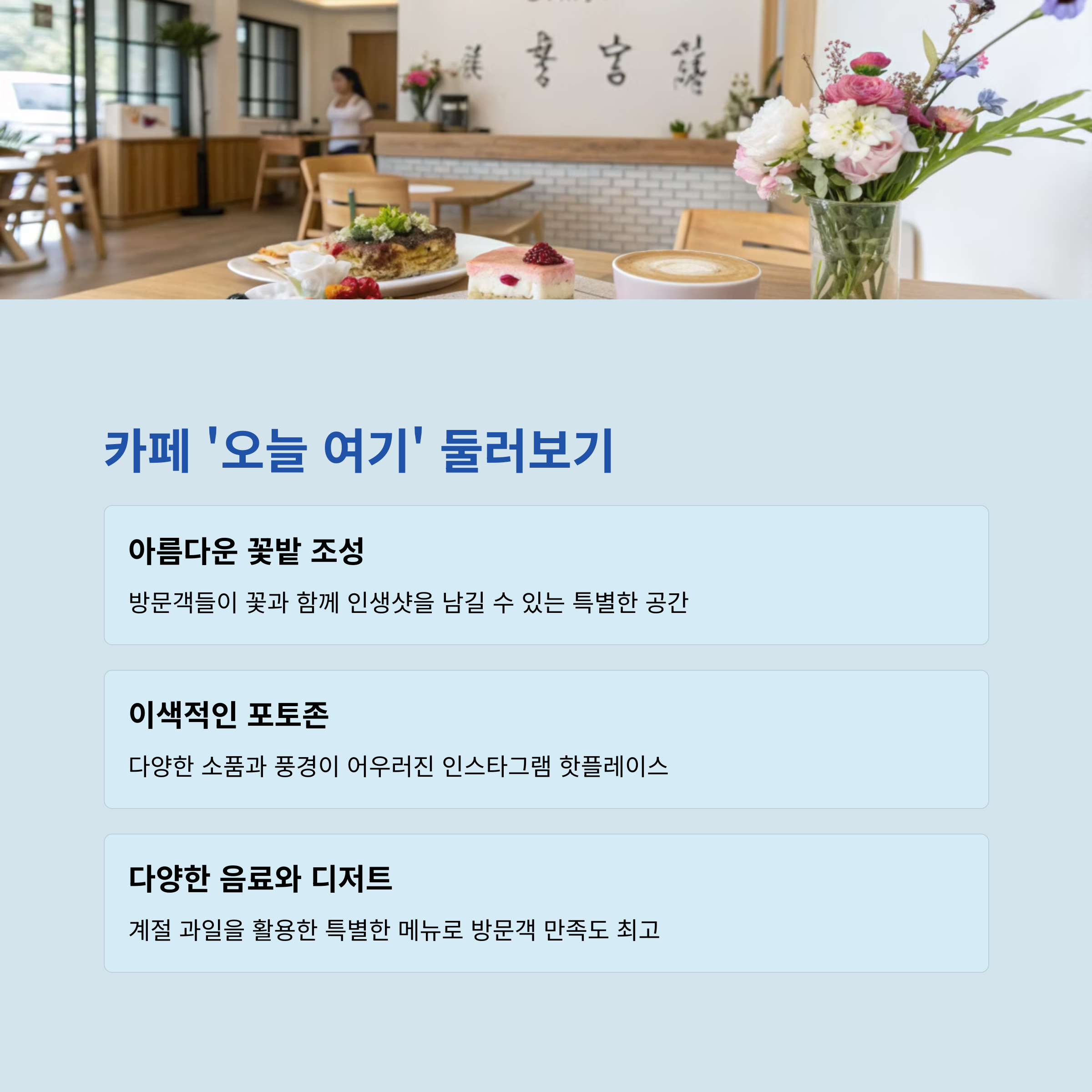 | 오늘 여기 카페 | 샤스타데이지를 감상할 수 있는 인기 카페. |