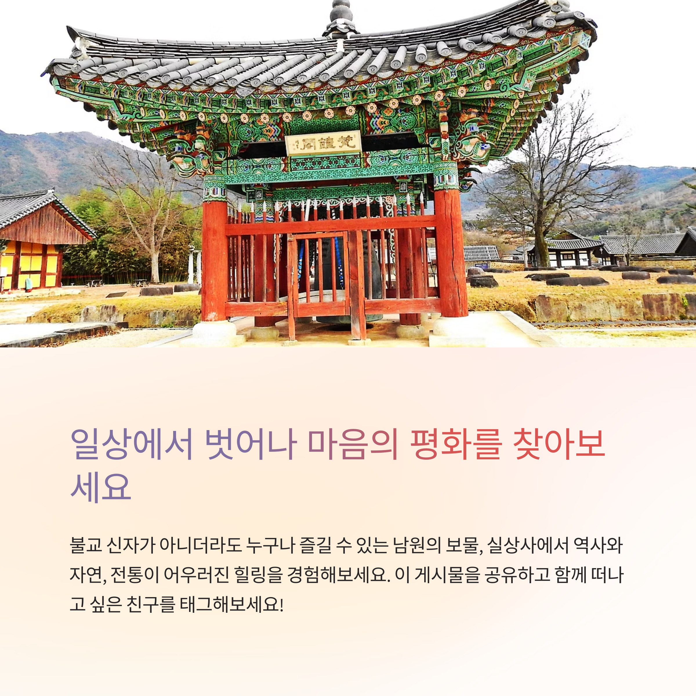 자연과 전통, 마음의 평화가 함께하는 실상사 여행은 불교 신자뿐 아니라 누구에게나 열린 쉼의 공간입니다.