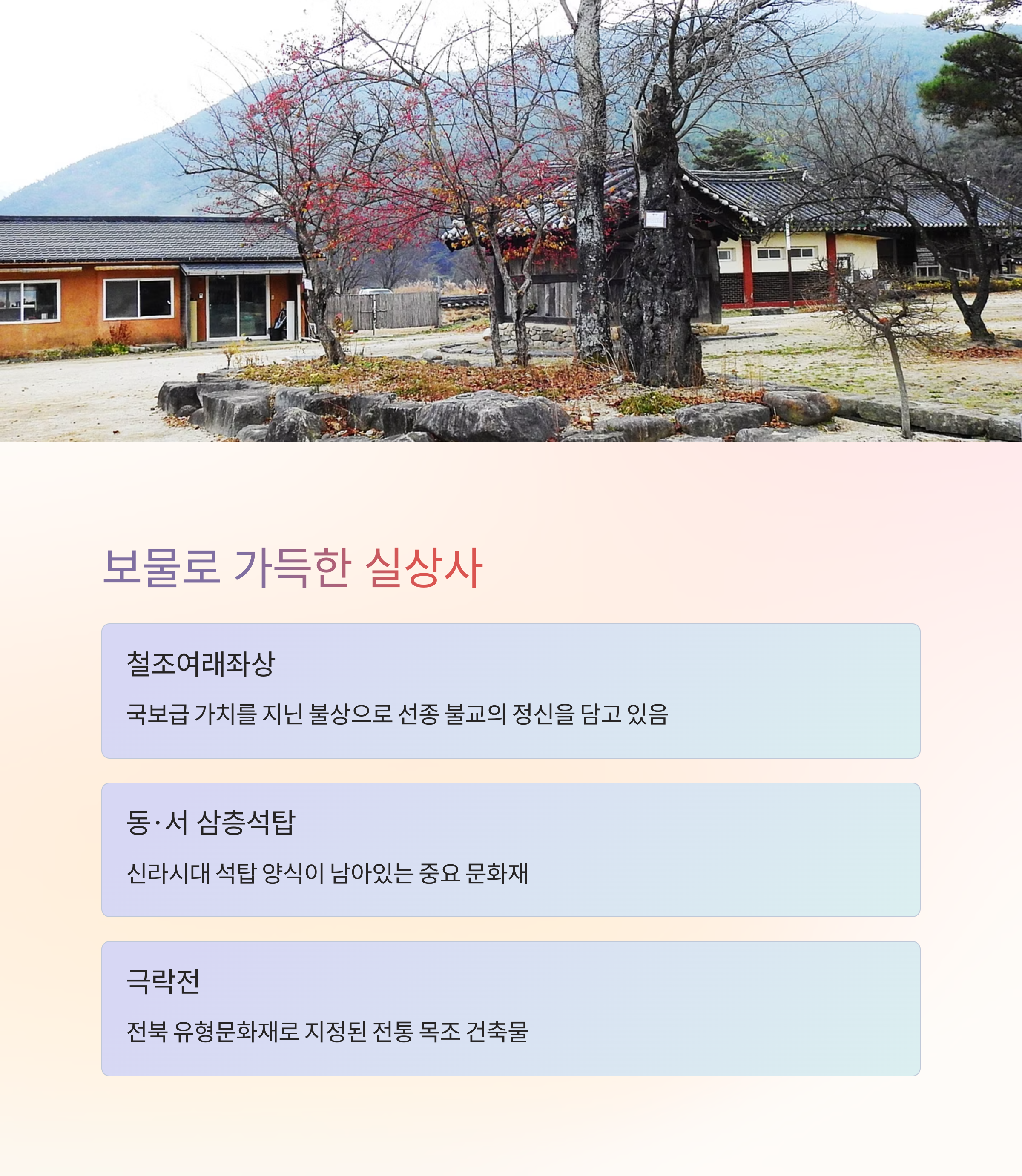 실상사처럼 자연과 전통이 어우러진 조용한 여행지를 알고 있다면 댓글로 함께 나눠주세요. 마음이 머무는 힐링 여행지 찾는 분들께 큰 도움이 됩니다.