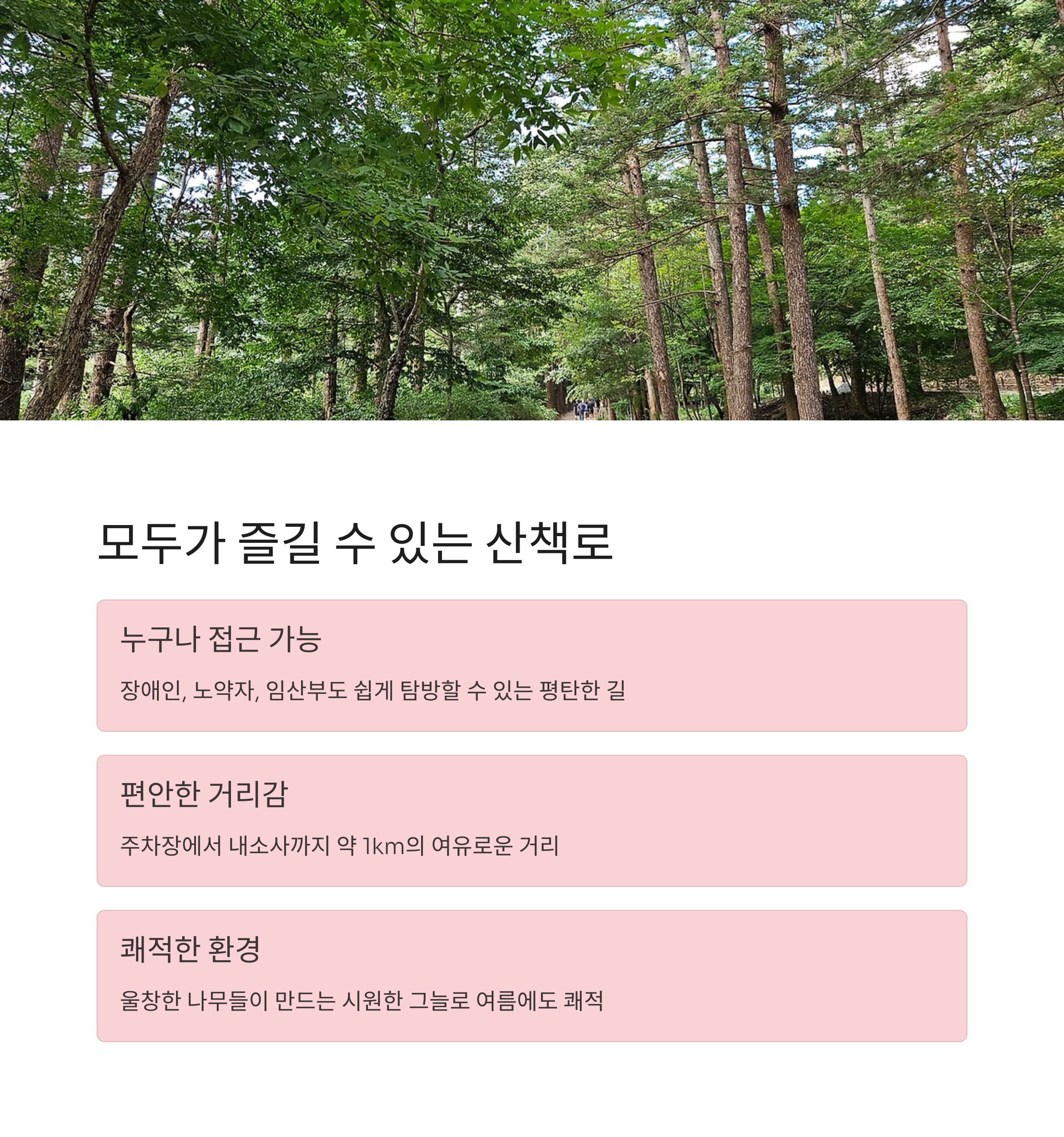 전나무 숲길 약 700여 그루의 전나무가 만든 초록빛 산책로