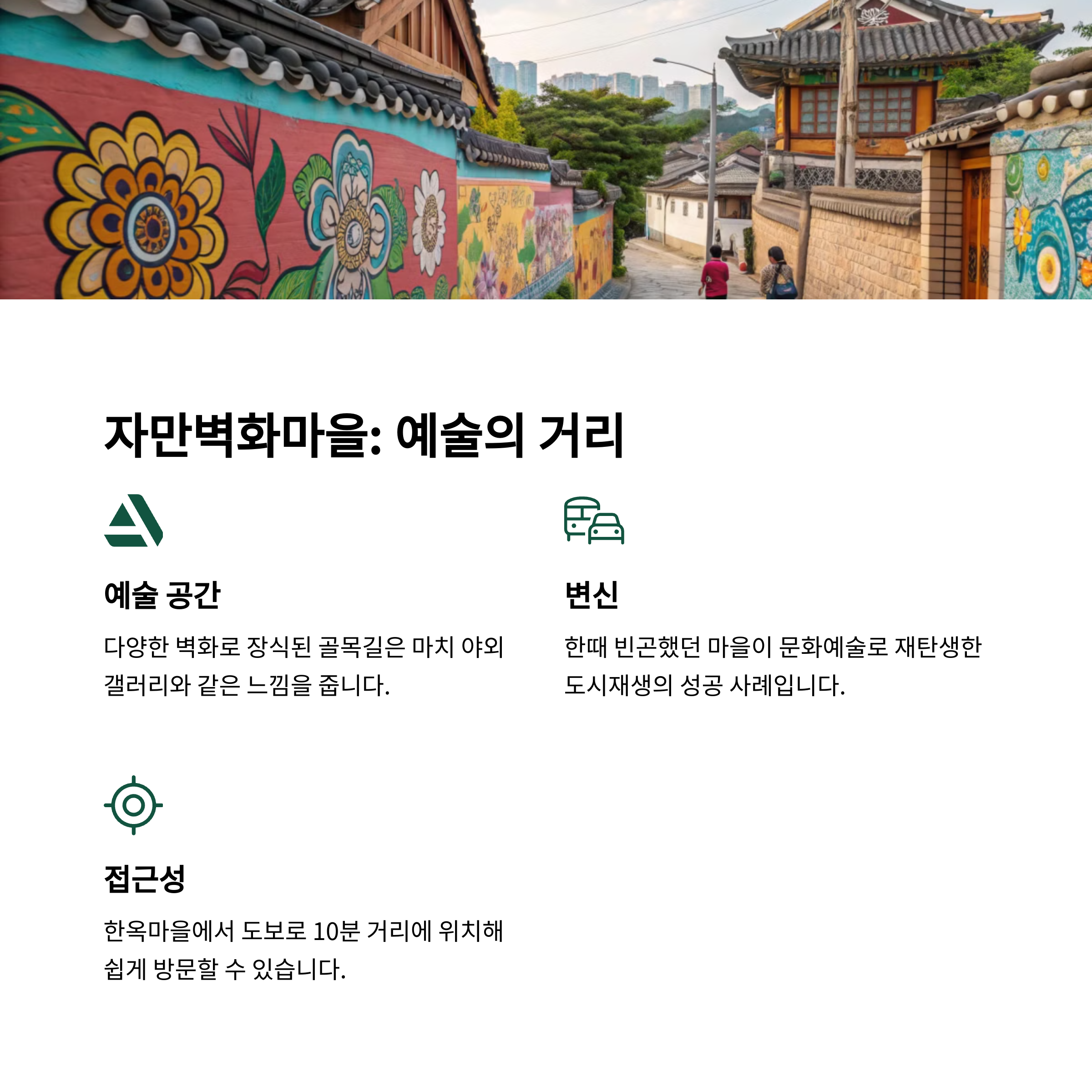 | 자만벽화마을 | 알록달록한 벽화로 가득한 감성적인 거리 |