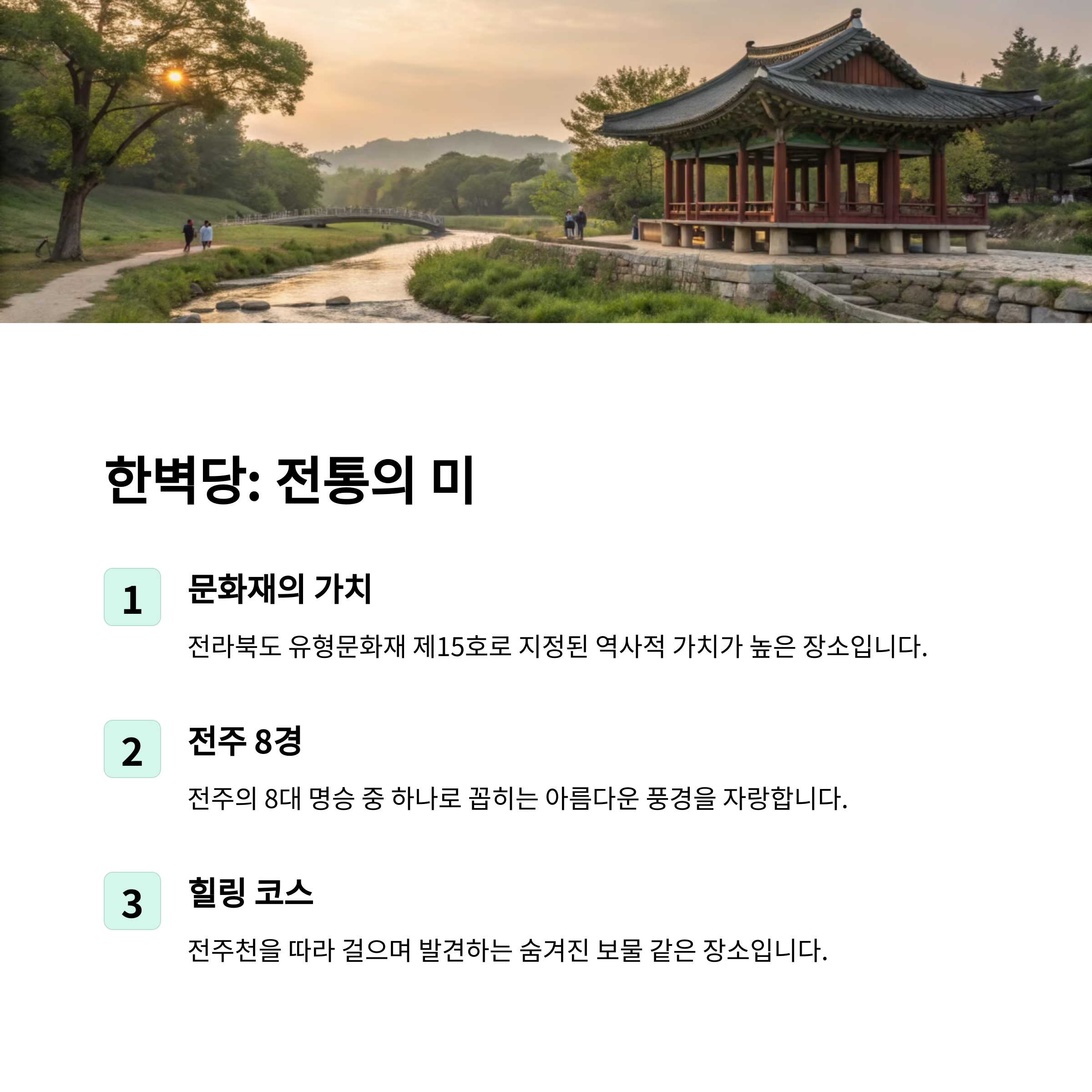 전주 한옥마을의 숨겨진 보석 같은 장소들을 만나보세요.