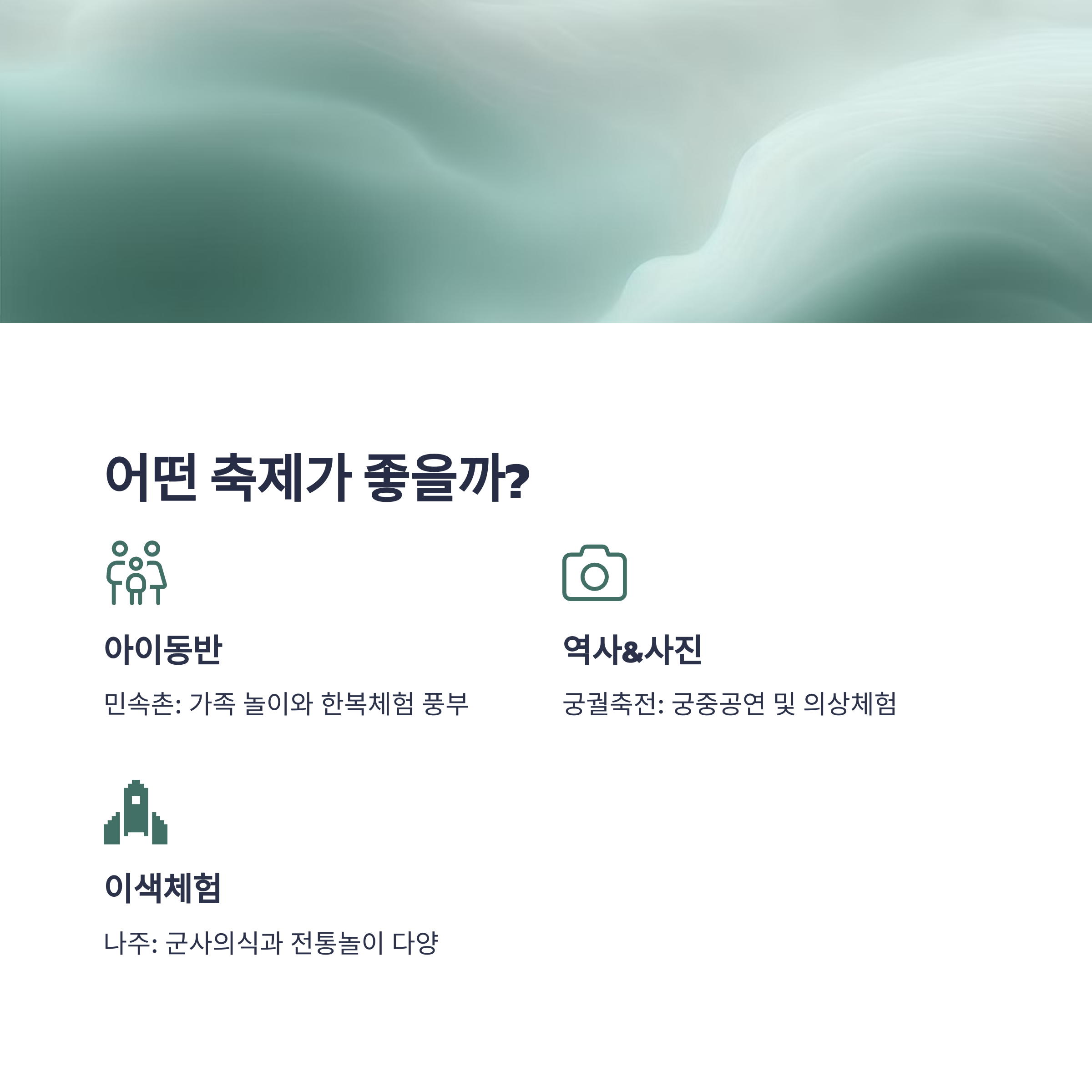 한복 체험, 전통놀이, 지역축제 등 기억에 남는 전통문화 나들이 장소가 있다면 댓글로 공유해주세요! 다른 분들의 여행 계획에도 큰 도움이 됩니다.