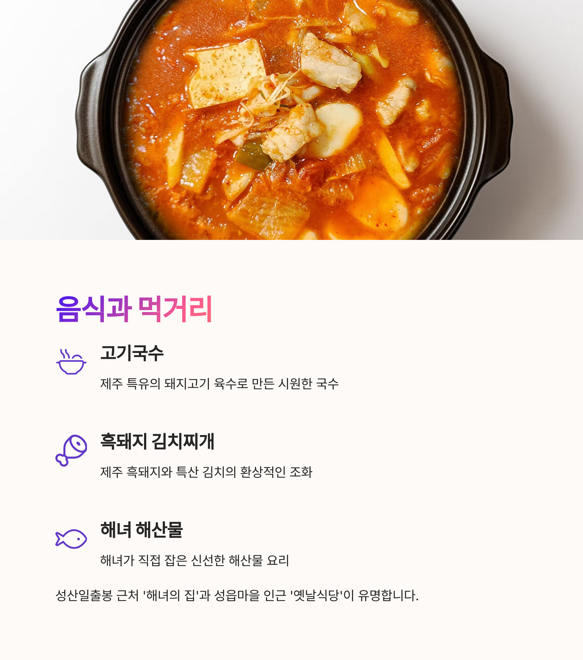 | 주요 테마 | 자연 절경, 화산 지형, 제주 민속문화 체험 |