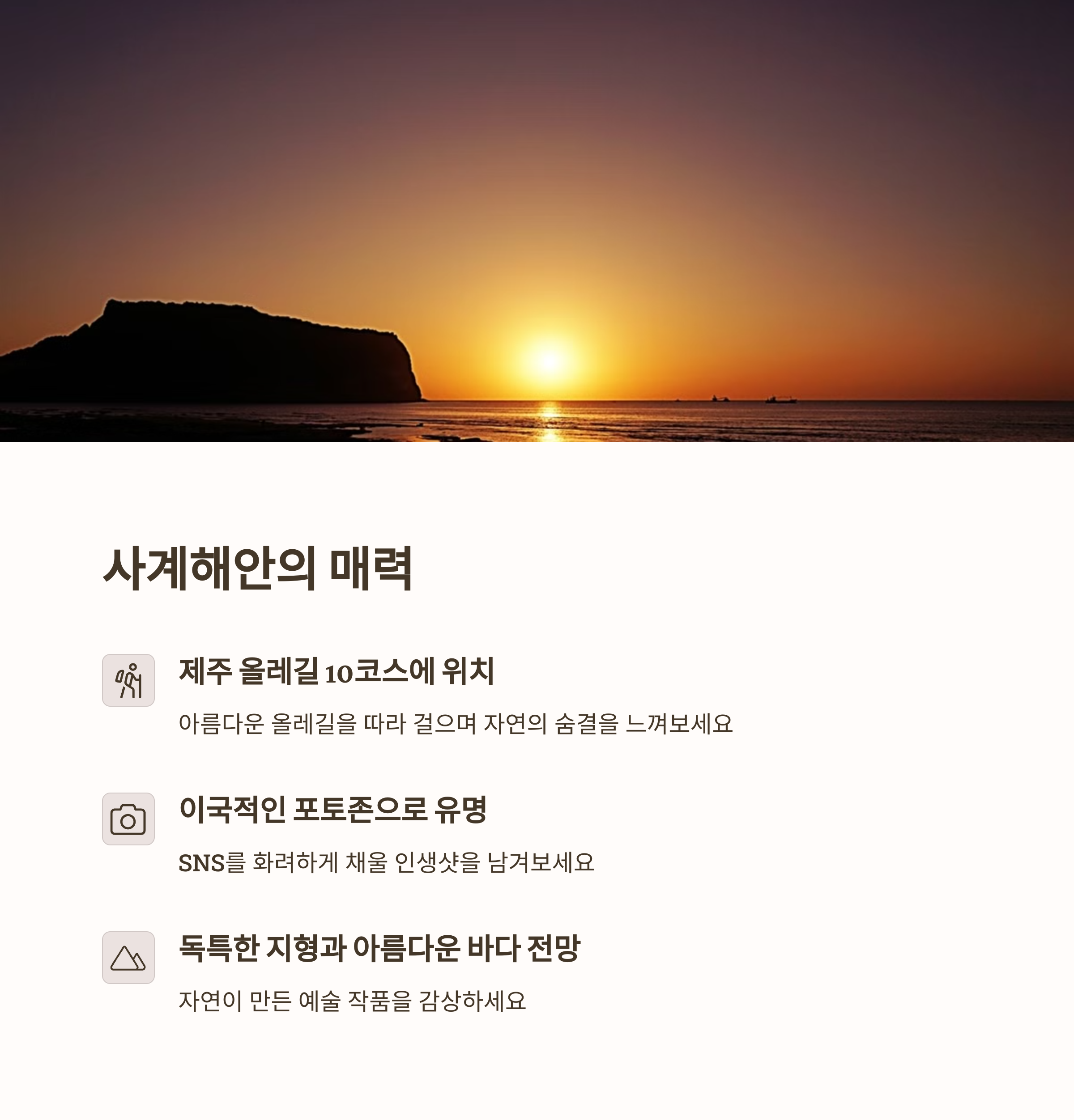| 제주 애월 조용한 카페부터 오름 산책까지 하루 코스 (0) | 2025.03.27 |