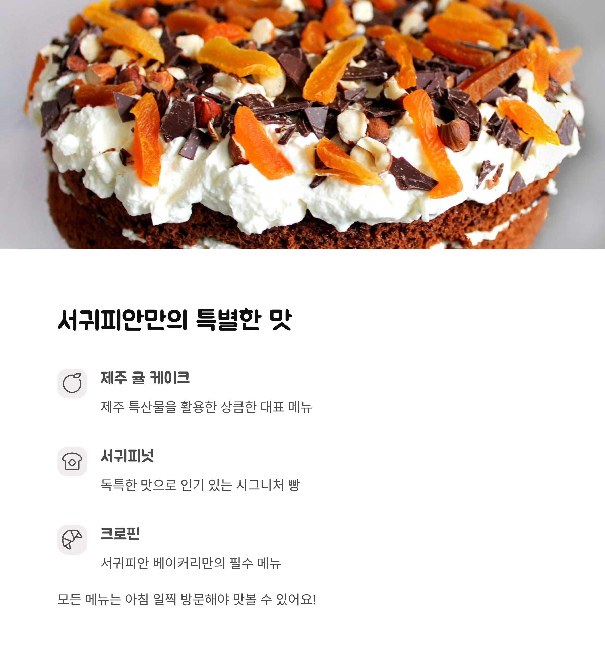 | 제주 귤 케이크, 서귀피넛 시그니처 메뉴 | 커피와 빵을 함께 즐기는 감성 공간 | 1박 2일 빵 투어 루트 추천 |