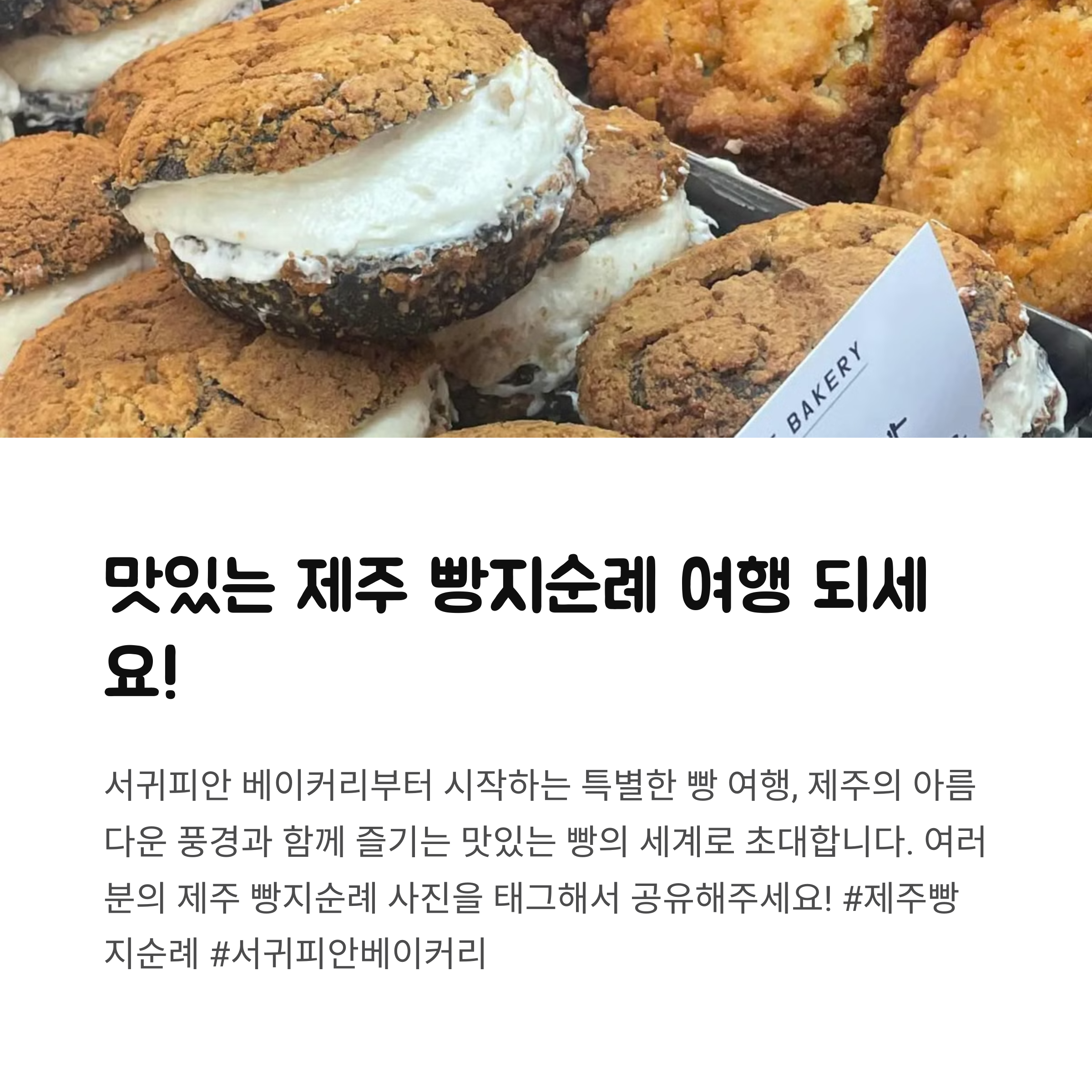 서귀포시에는 서귀피안 외에도 다양한 베이커리가 곳곳에 위치해 있습니다. 오션뷰 카페와 베이커리가 결합된 공간들은 제주다운 여유와 멋을 동시에 느낄 수 있으며, 빵 하나하나에 섬의 재료를 담아낸 디테일이 인상적입니다. 빵지순례를 계획할 땐, 각 베이커리마다의 시그니처를 놓치지 말고 여유롭게 들러보는 것이 좋습니다. 혼자서도, 커플도, 가족 여행 중에도 모두에게 어울리는 감성 가득한 휴식이 되어줄 거예요.