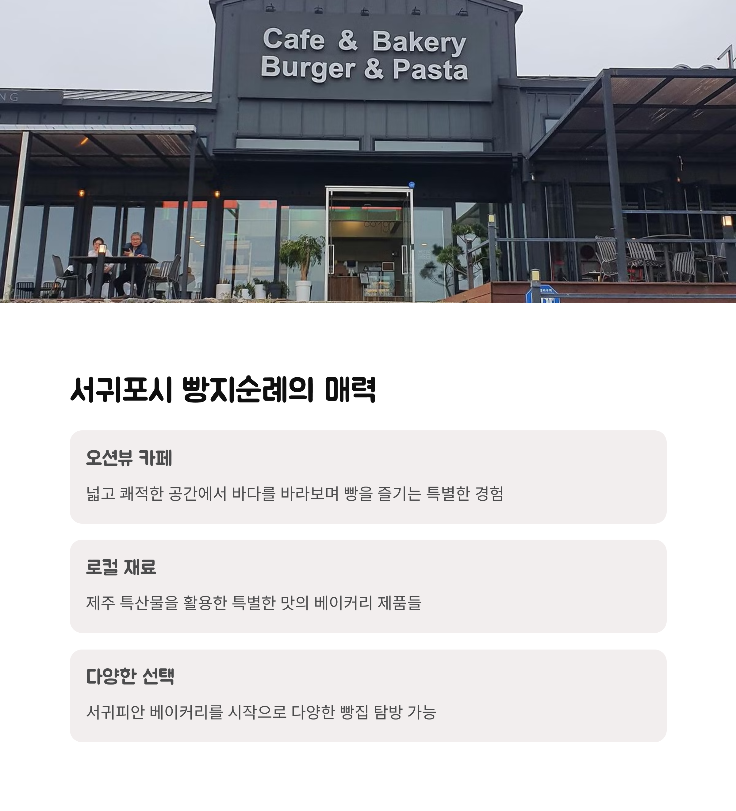 서귀포 성산의 인기 베이커리 | 여유롭고 탁 트인 뷰가 특징 | 제주시까지 확장 가능한 코스 |