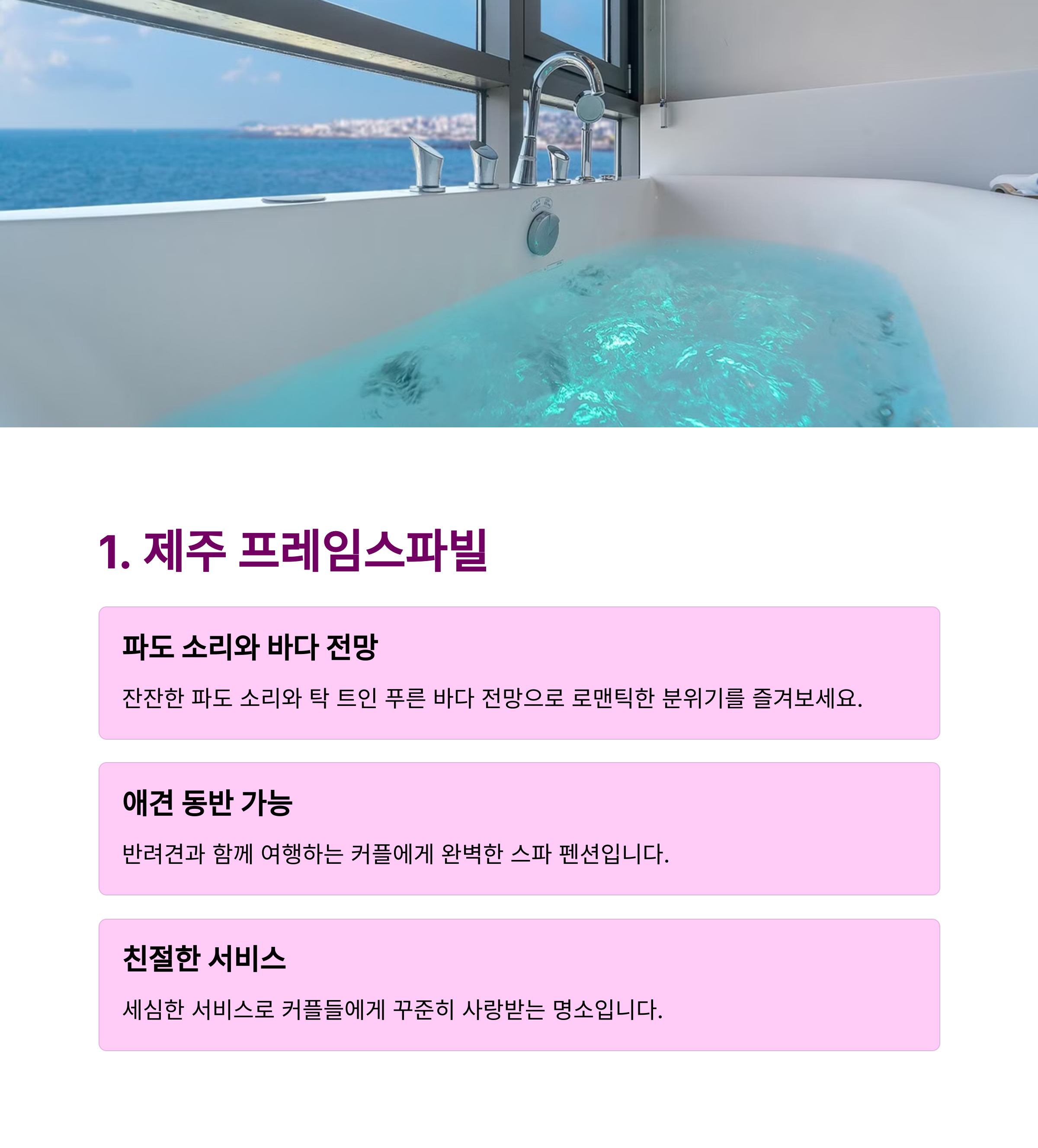 프레임스파빌의 감성 오션뷰 스파 클랭블루스테이의 감성 노을 씨스파 함덕점 커플 전용 프로그램