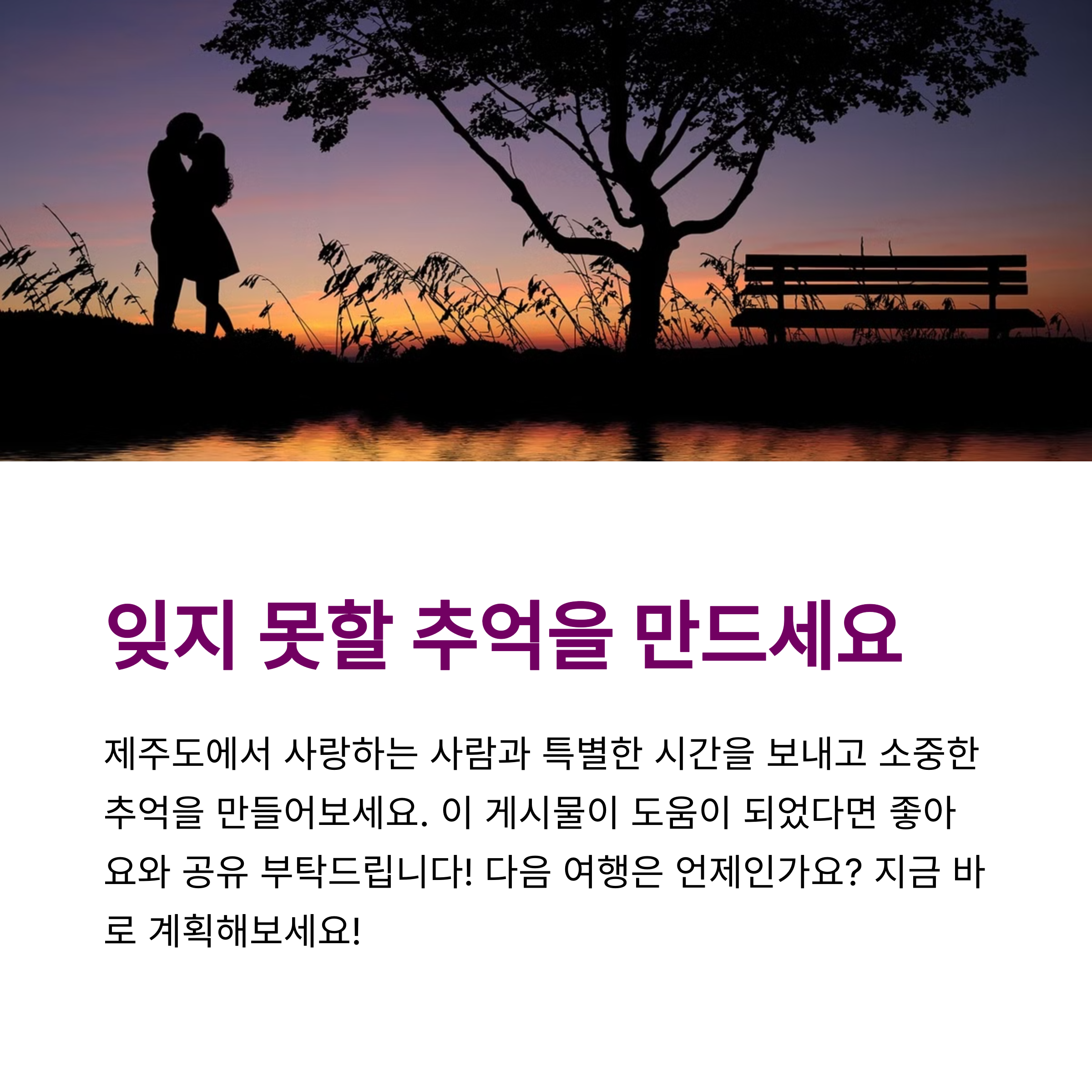 제주도 커플 여행지 중에서 가장 인상 깊었던 곳은 어디인가요? 혹은 여러분만 알고 있는 숨은 명소가 있다면 공유해 주세요. 댓글로 여러분의 이야기를 들려주시면 다른 커플들에게도 큰 도움이 됩니다!