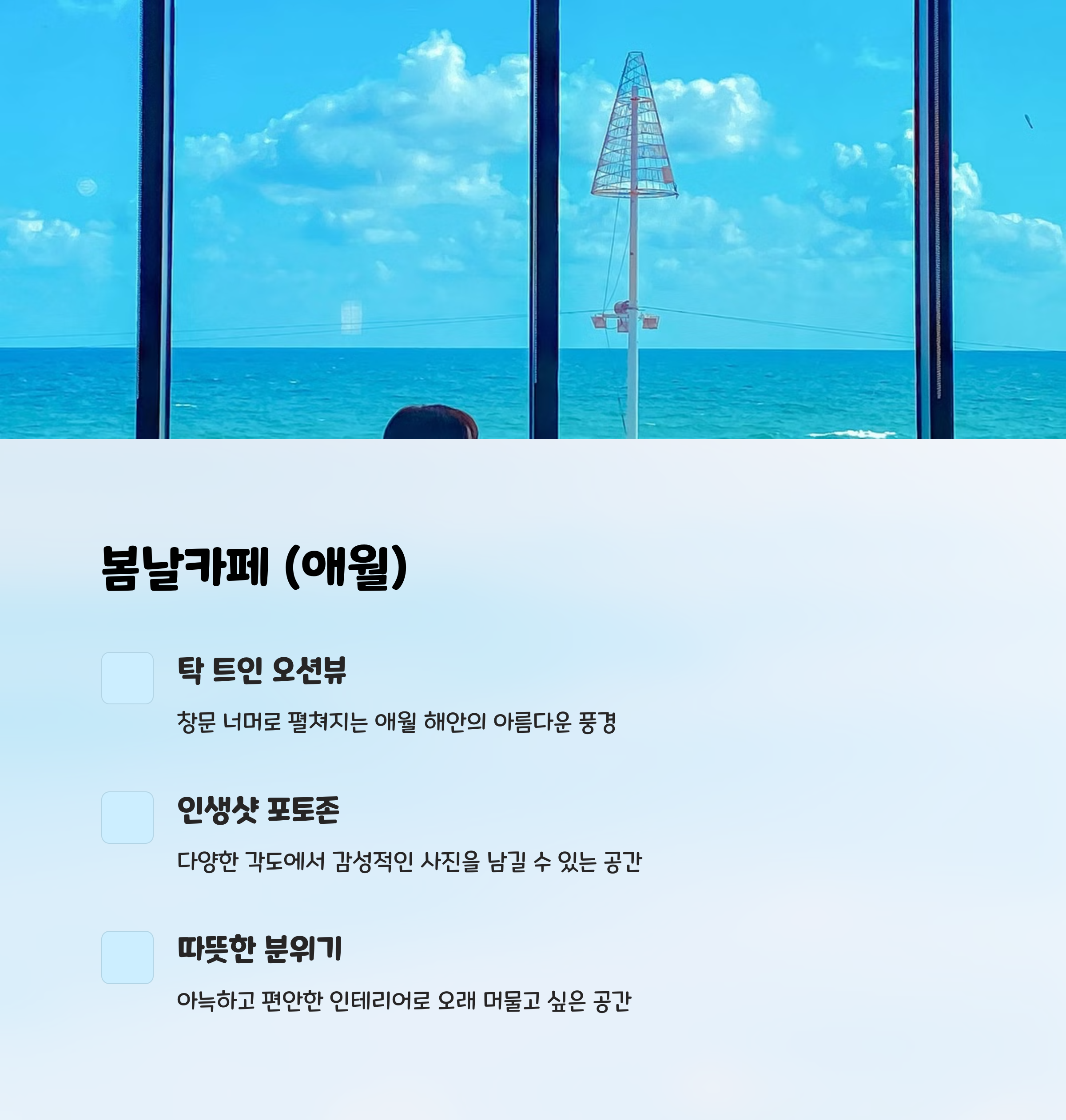 제주 여행 중 가장 기억에 남았던 감성 카페가 있다면 댓글로 알려주세요! 숨은 보석 같은 카페도 함께 공유해주시면 모두에게 도움이 될 거예요 ☕🌊📷
