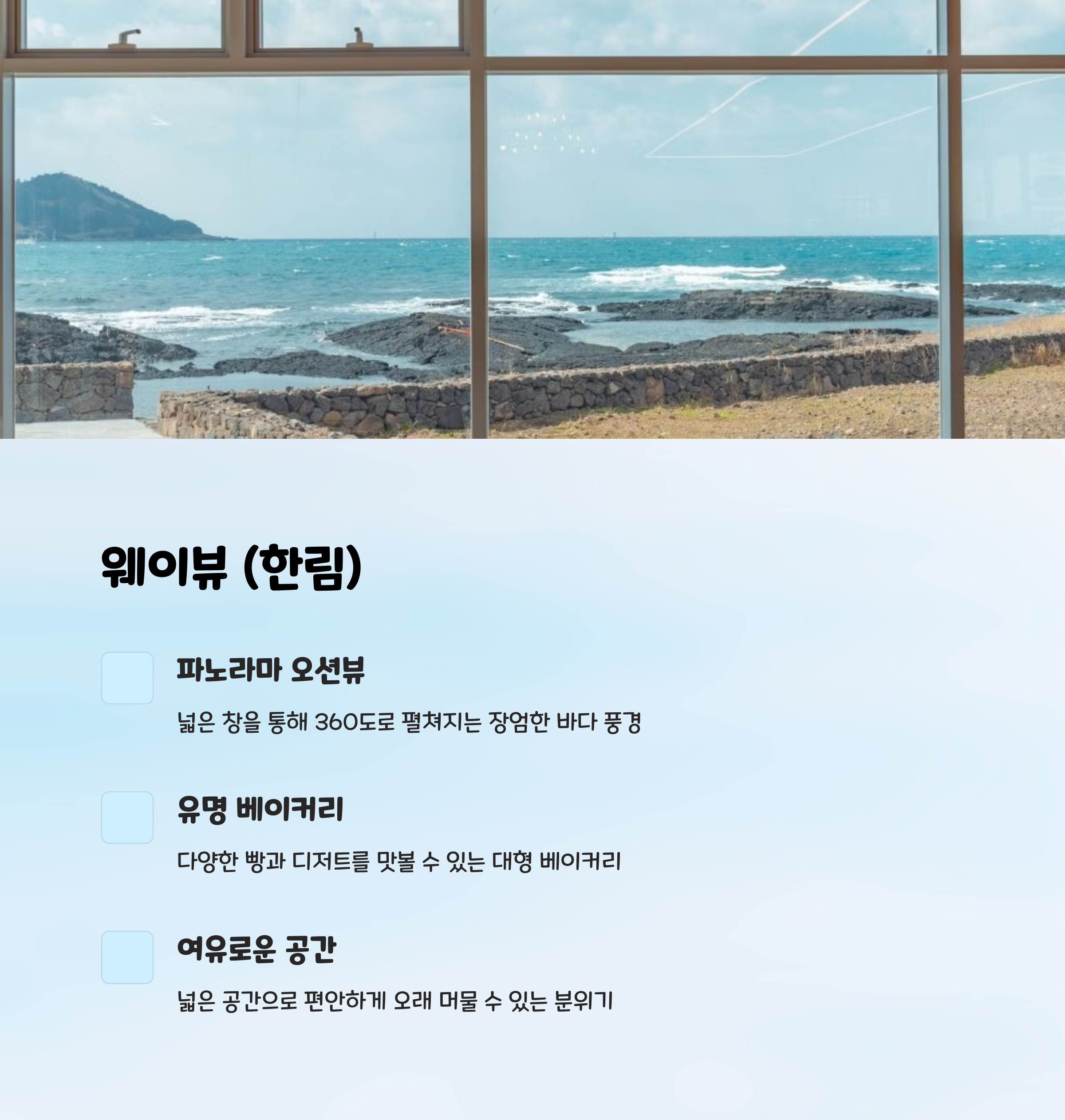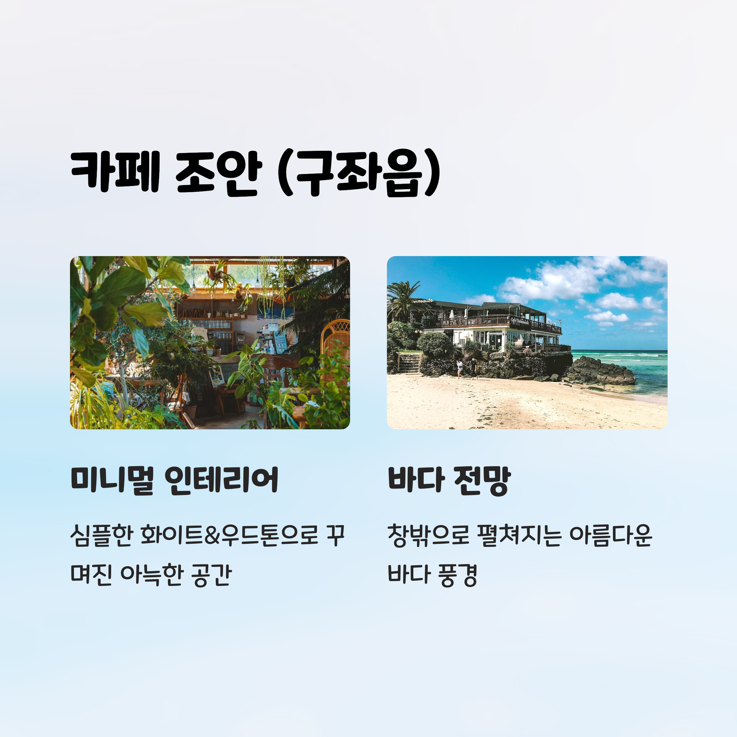 | 조용한 바다뷰 감상하기 좋은 구좌, 한림 카페 추천 | 애월, 성산, 서귀포 등 제주 주요 지역별 감성 카페 정리 | 인테리어, 디저트, 풍경까지 감성 포인트 완벽! |