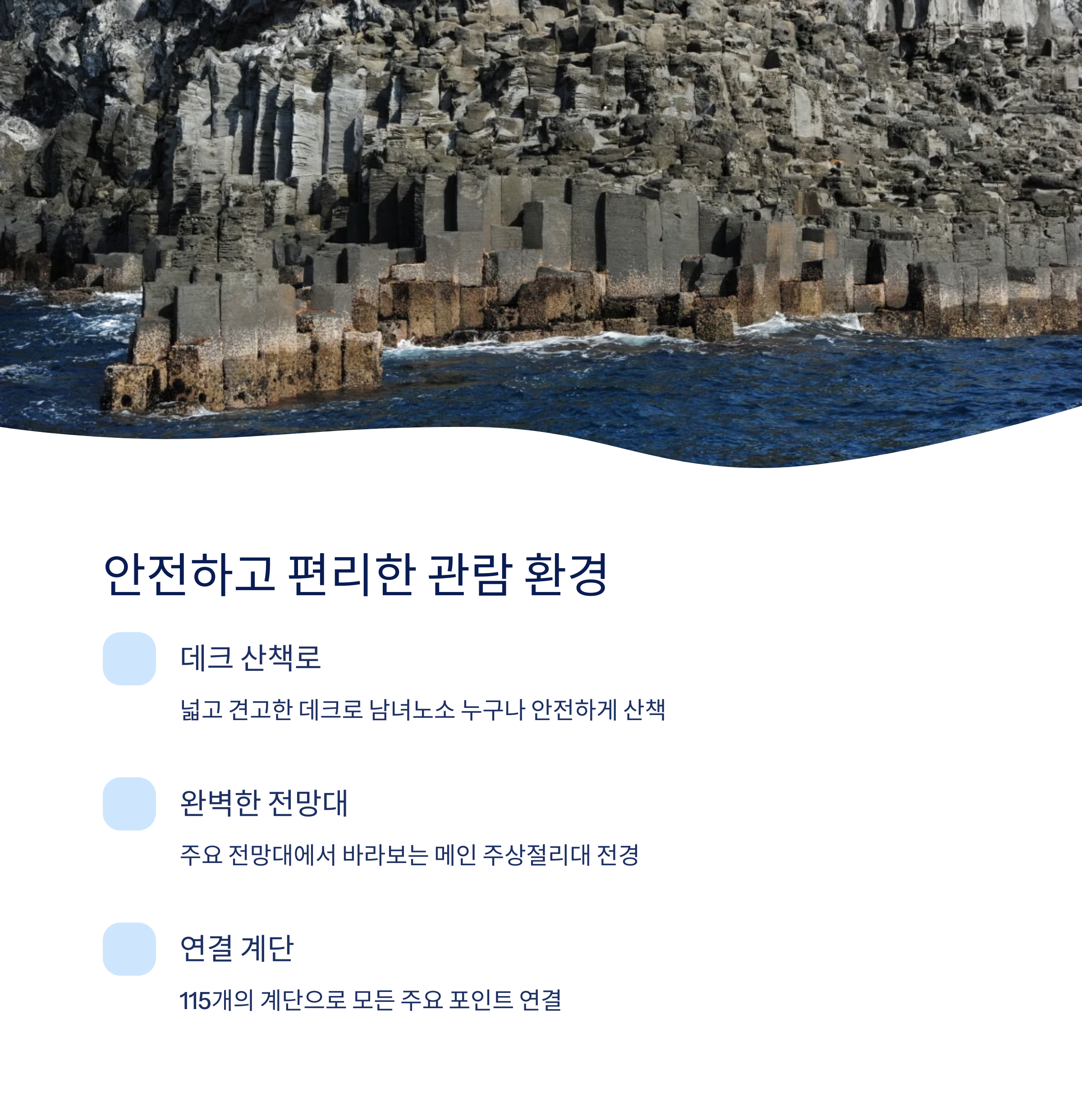 | 유네스코 세계자연유산, 천연기념물 제443호 | 데크 산책로와 전망대 안전하게 정비됨 | 하루 일정의 해안 자연 여행 코스로 적합 |