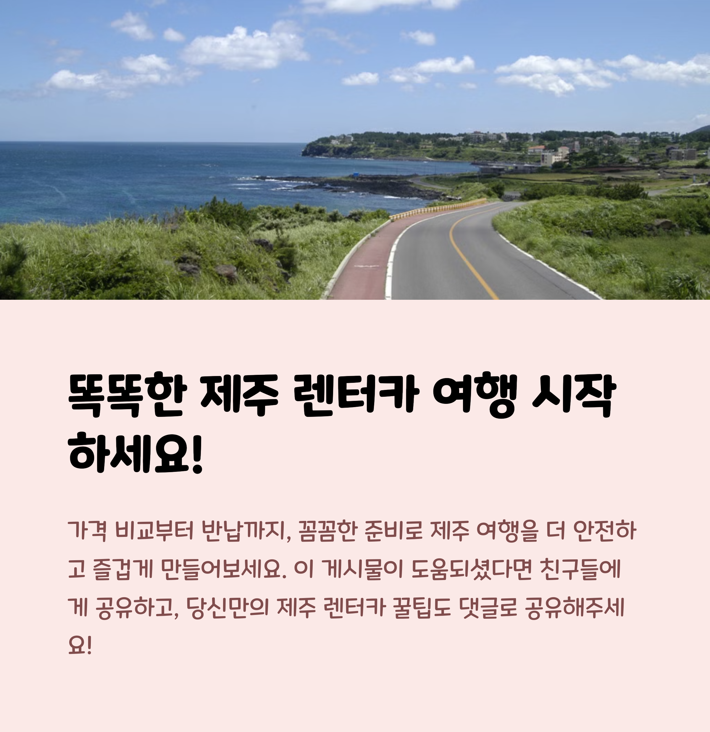 제주에서의 렌터카 경험이나 추천 사이트, 꿀팁이 있다면 댓글로 자유롭게 공유해주세요. 다른 분들에게도 큰 도움이 될 수 있어요!