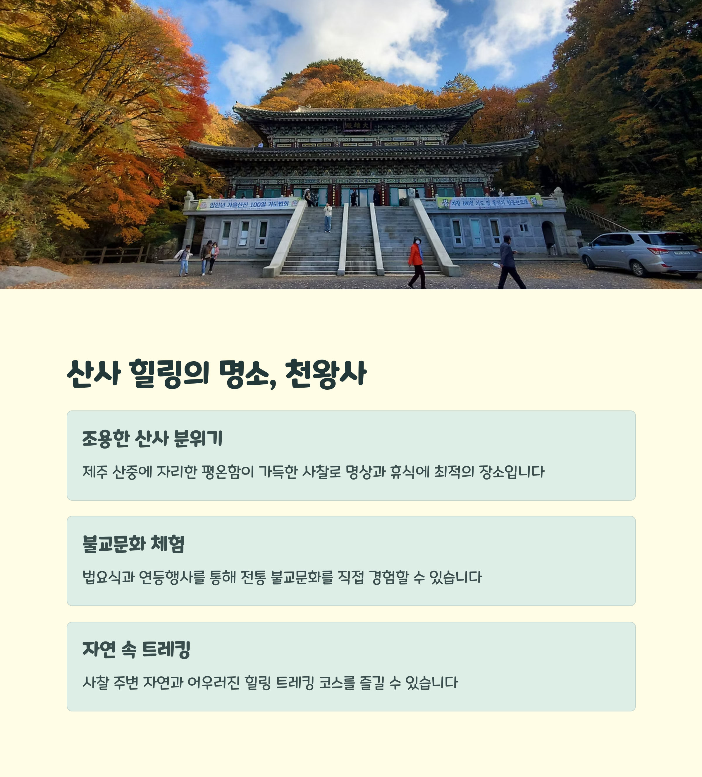 | 제주 사찰 여행 | 자연과 전통문화가 조화된 명소로 주목받고 있습니다. |